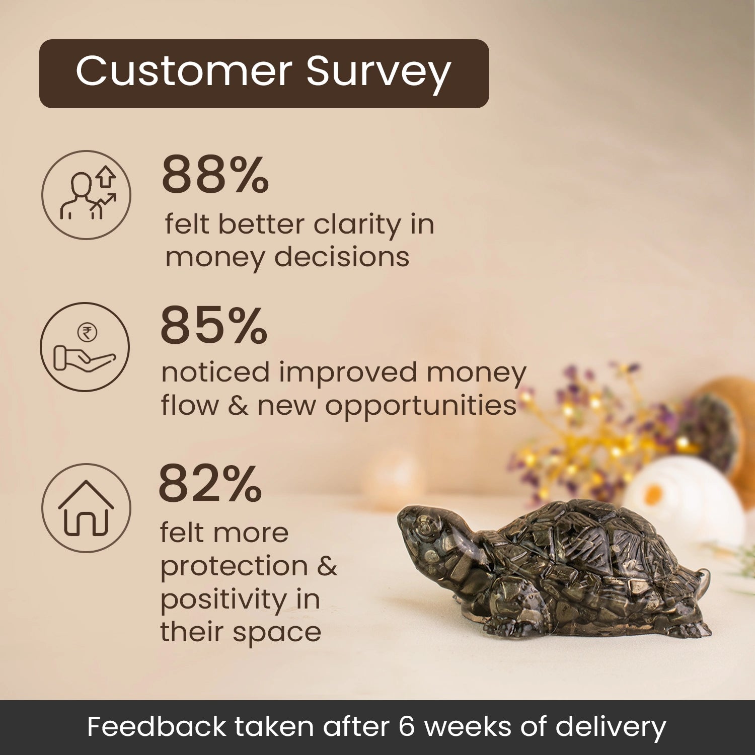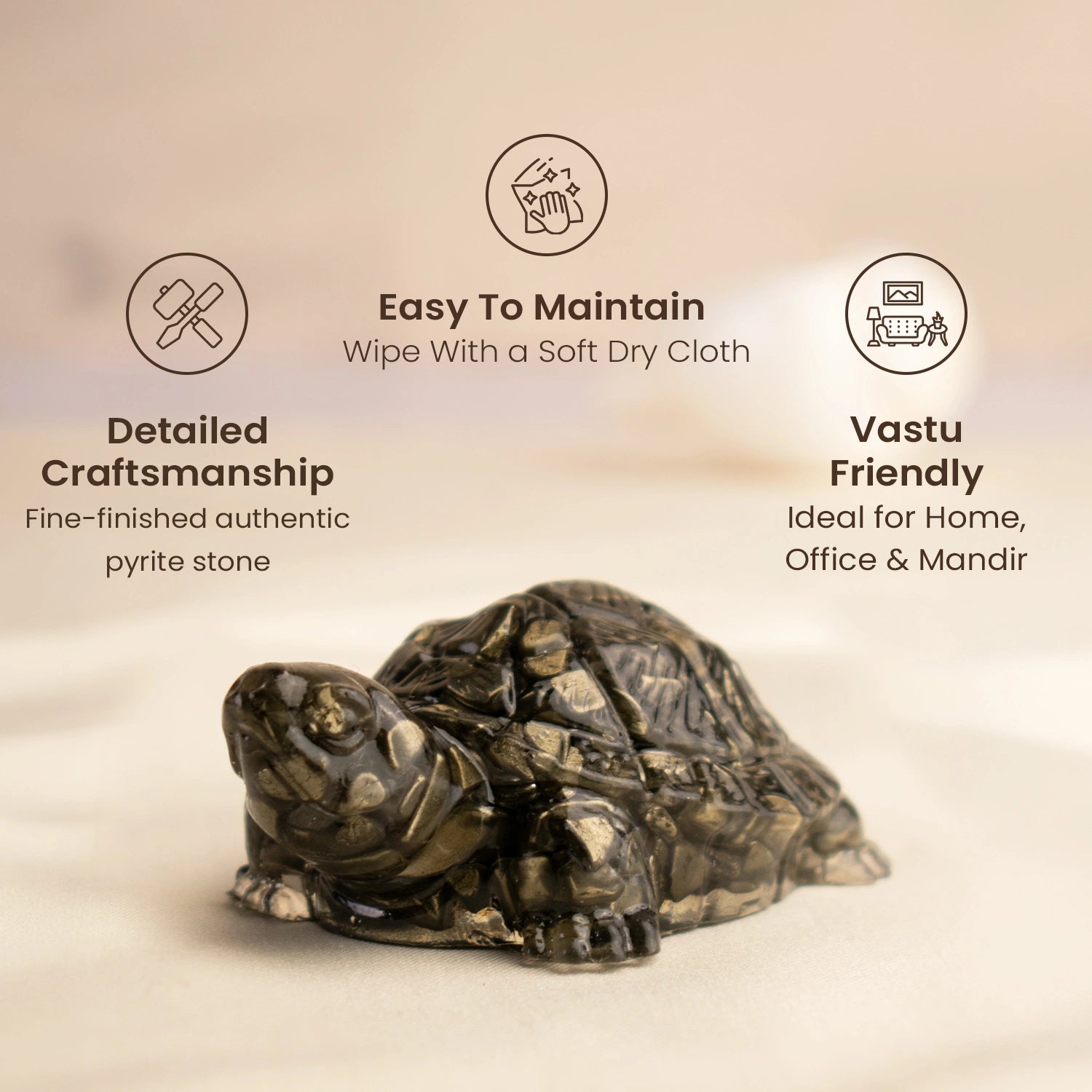 A powerful and auspicious symbol, the Collector’s Edition Pyrite Tortoise helps you move ahead with clarity, motivation, and balance in everyday life. It is perfect for homes, offices, and workspaces.