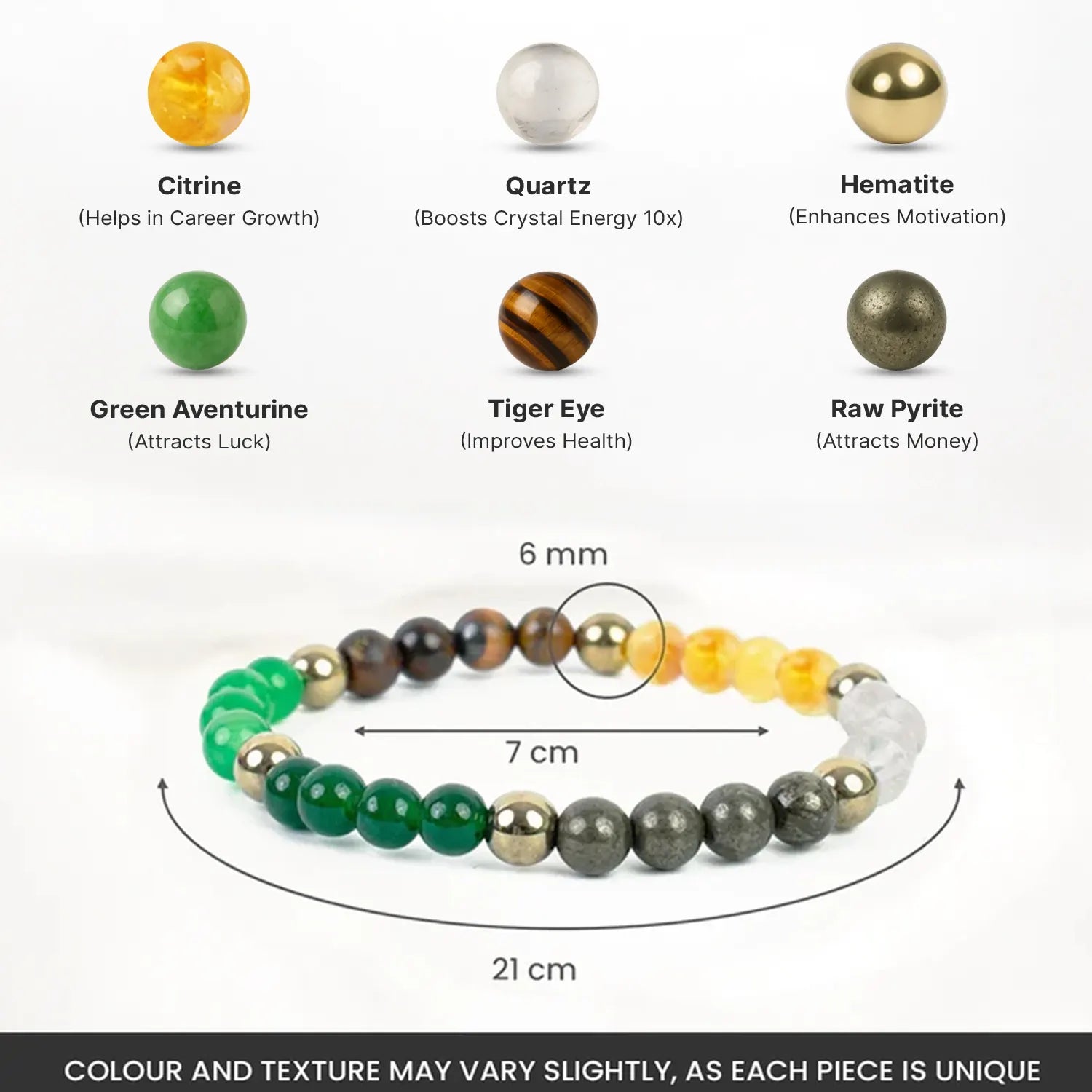 1. 𝗔𝘁𝘁𝗿𝗮𝗰𝘁𝘀 𝗪𝗲𝗮𝗹𝘁𝗵 & 𝗟𝘂𝗰𝗸 – Pyrite draws financial prosperity, Citrine supports career growth, and Green Aventurine brings luck, opening doors for success.