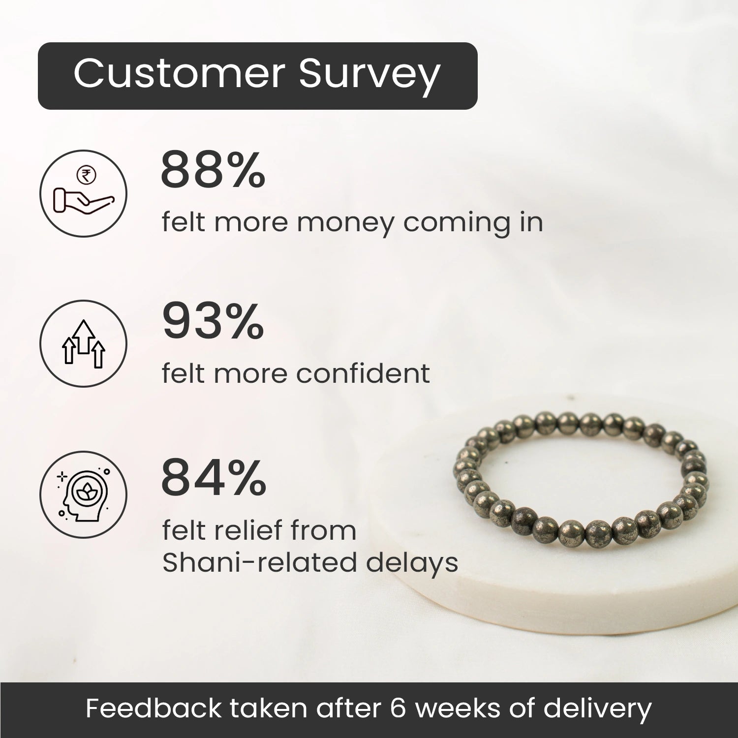 This bracelet is not only beautiful but also carries strong healing energy. It protects from negative vibes and boosts self-esteem. Pyrite is known to reduce stress, increase focus, and give the courage to face challenges. It also brings a sense of balance and motivation, which helps in both personal and professional life.