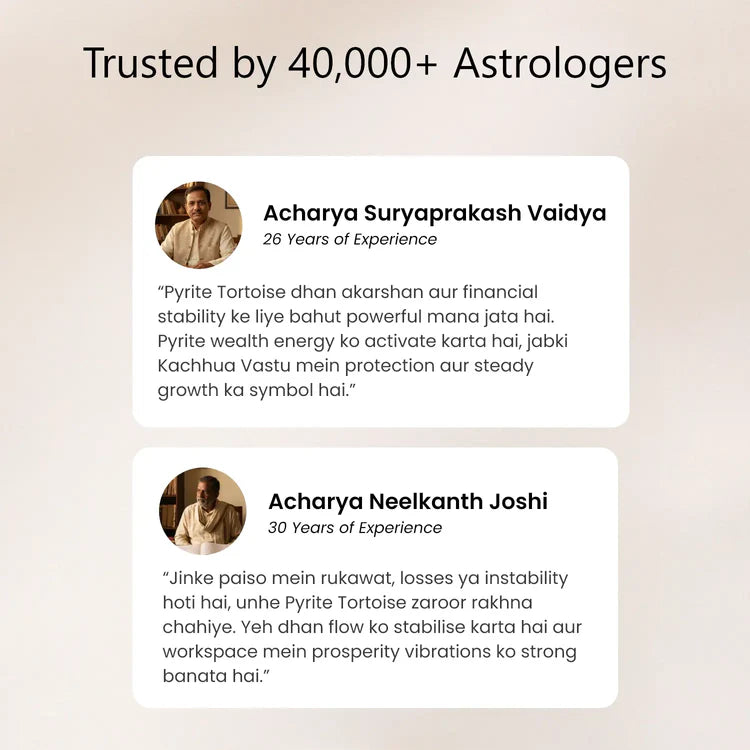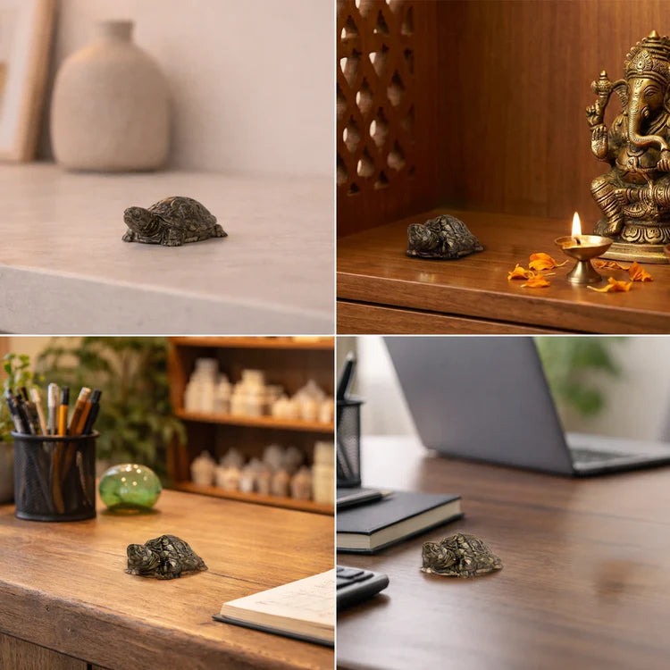 • Vastu Pyrite Tortoise: Inspired by Lord Kurma, the tortoise is a symbol of stability in Vastu and is believed to attract wealth and financial growth in your home or workplace.
