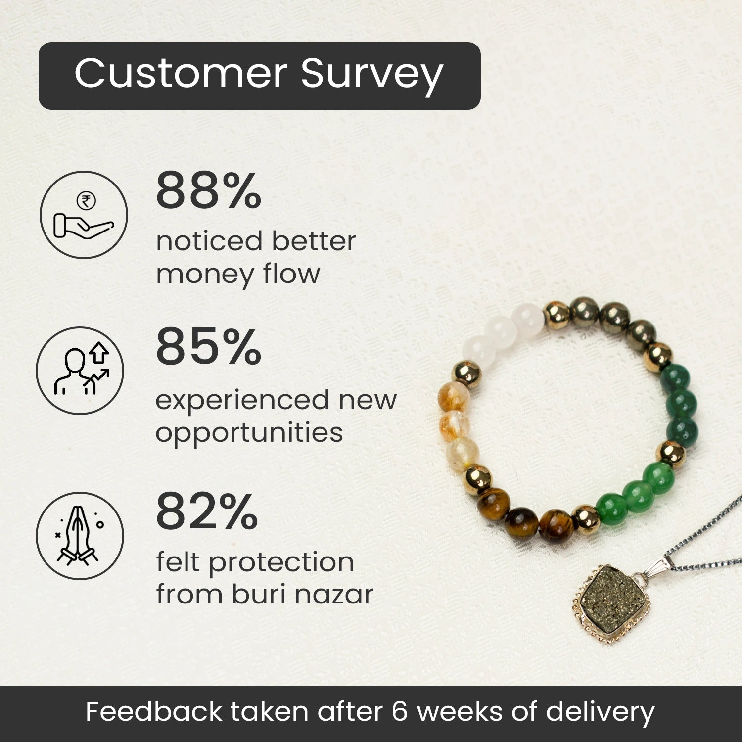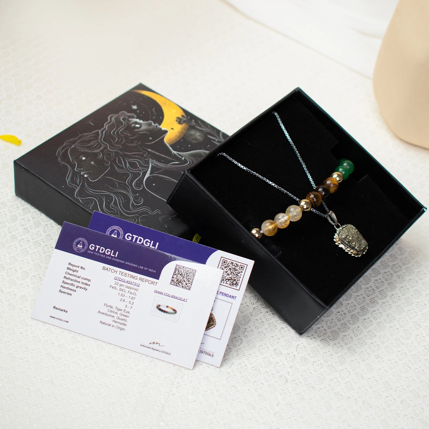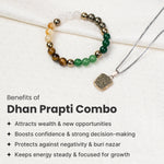The Dhan Prapti Combo includes a Pyrite Pendant + Dhan Yog Bracelet, designed to support money attraction, a strong mindset, and steady progress.