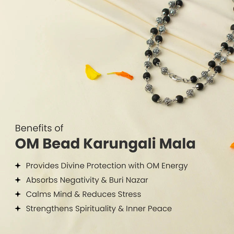 • Om Bead Karungali Mala: Made with original Karungali beads and sacred Om beads that support peace and positivity in daily life.