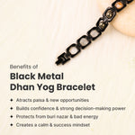 The Metal Dhan Yog Bracelet Combo (Silver & Black) is designed to attract samriddhi, financial luck, confidence, and positive energy. Both bracelets feature premium anti-tarnish metal plating, with the only difference being the silver and black finish for versatile daily styling.