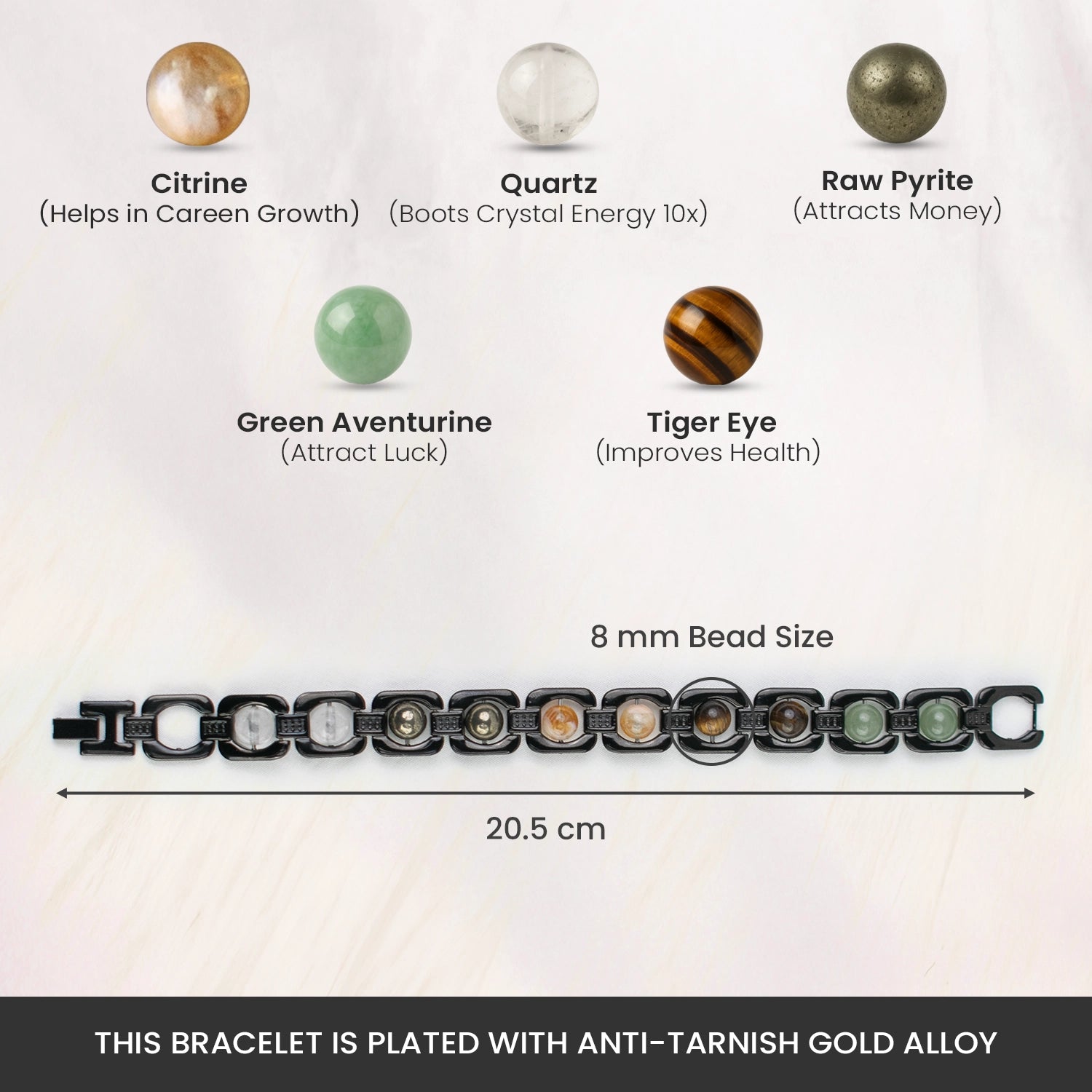 Wear it on the left wrist for grounding and wealth-attracting energy.