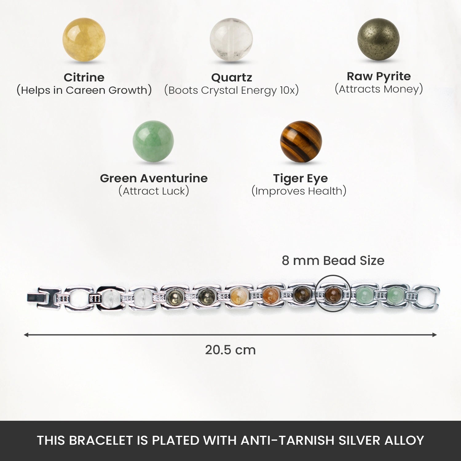 This combo includes two Dhan Yog bracelets , one black-plated anti-tarnish and one silver-toned anti-tarnish, both crafted with the same powerful crystal combination.