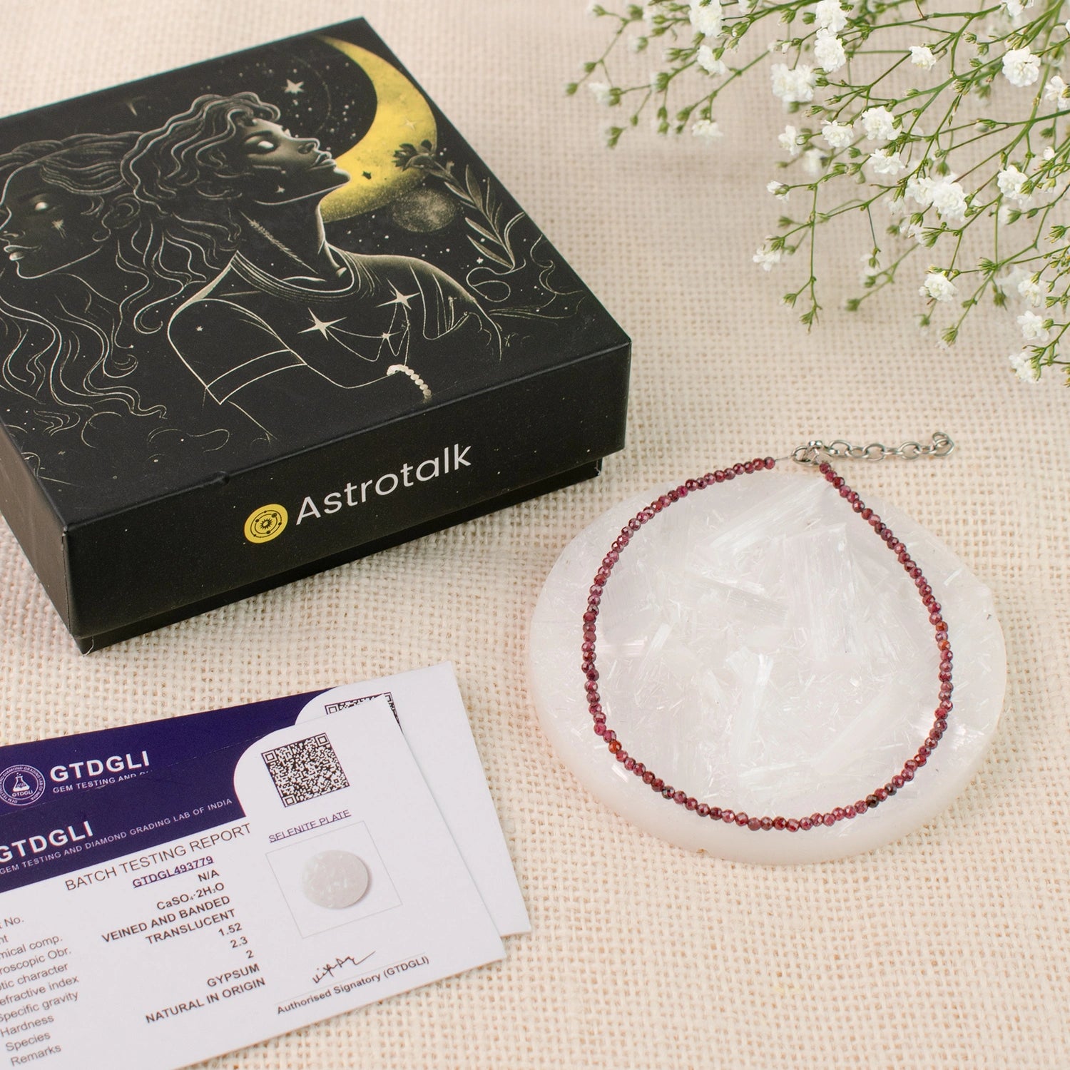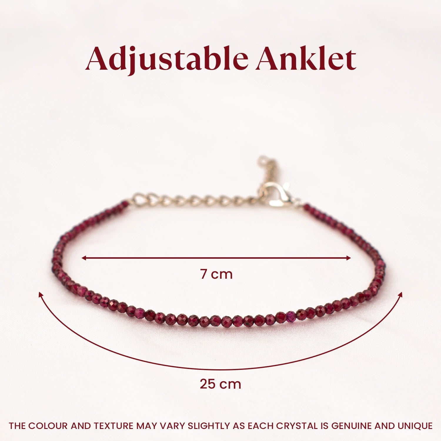 Prepaid orders are delivered on priority.The Garnet Anklet with FREE Raw Selenite Plate is designed for those seeking lasting and meaningful relationships.
