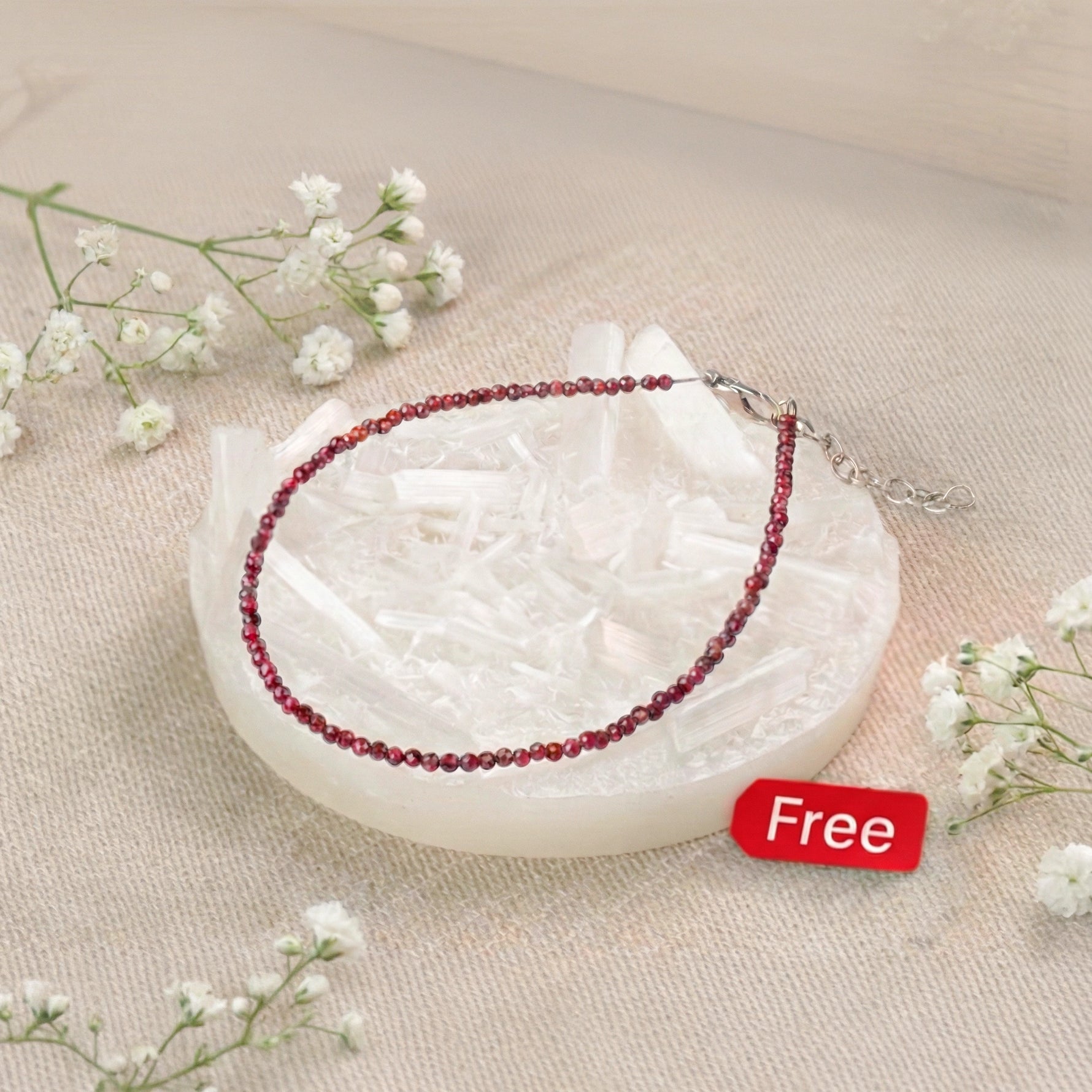 Garnet Anklet with Free Raw Selenite Plate