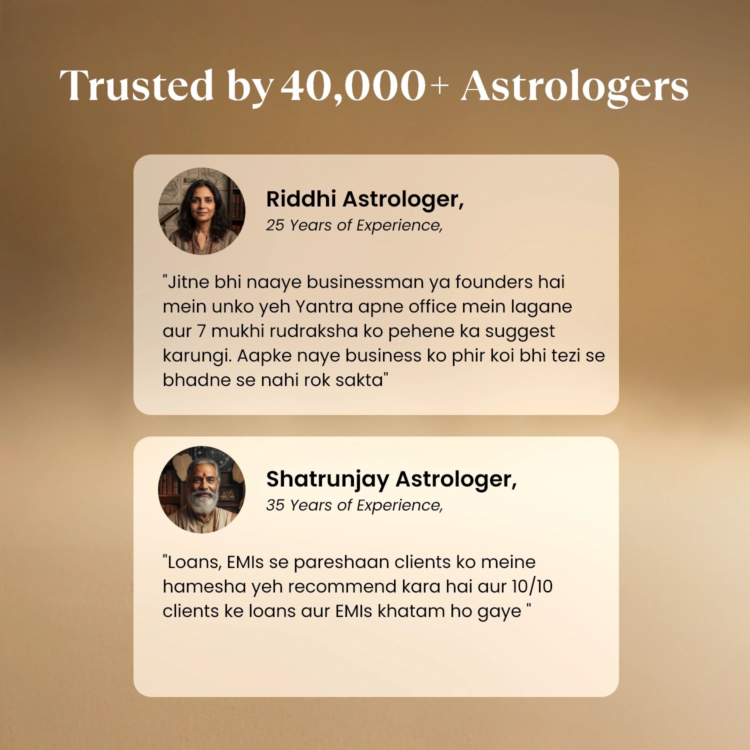 The 7 Mukhi Rudraksha removes financial blockages, attracts prosperity, and helps you gain stability in career and business. The Shree Yantra channels Goddess Lakshmi’s blessings, amplifying your growth and positivity.