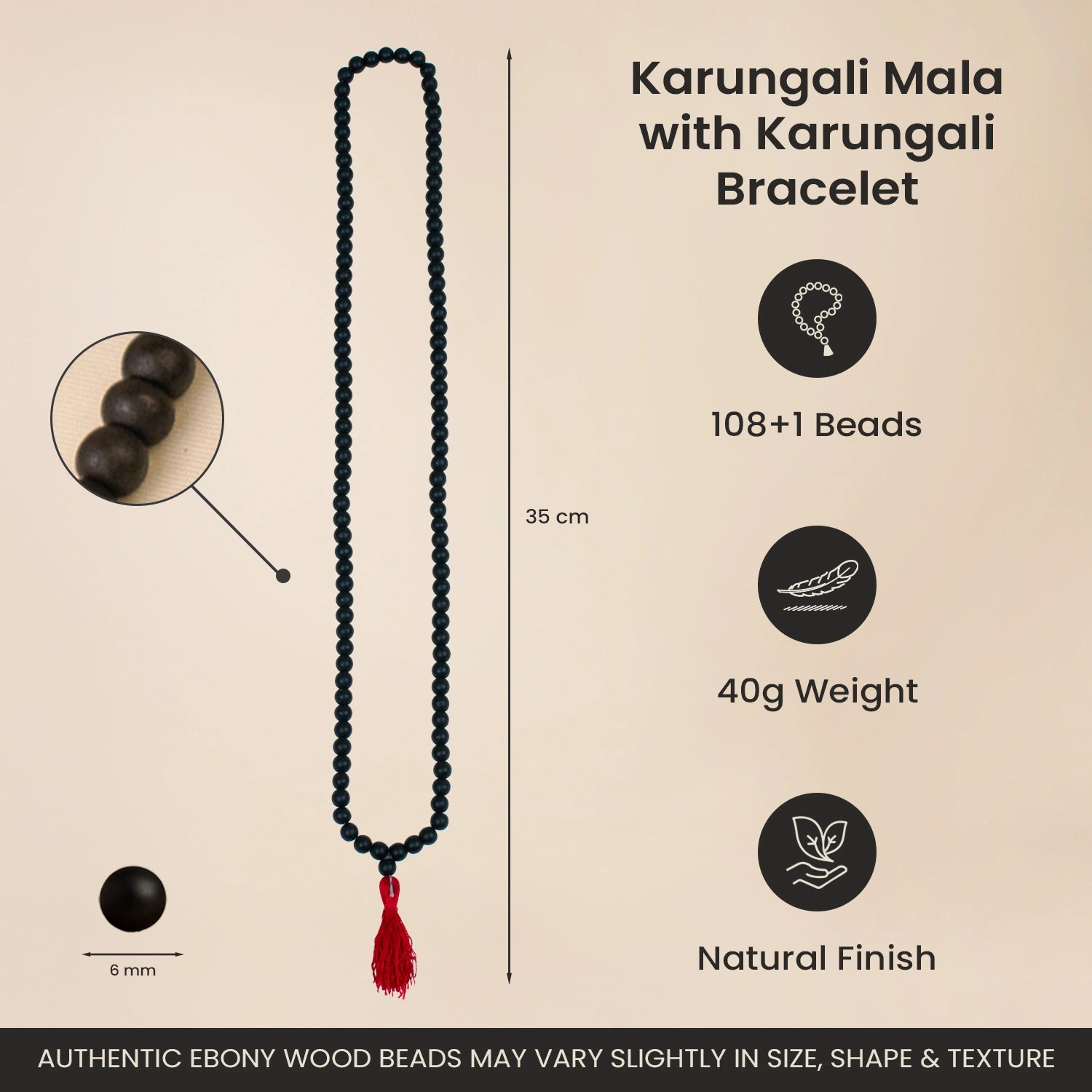 Karungali Malai 6mm for Kids (108+1 Beads) Original Ebony Wood (Govt. Certified)