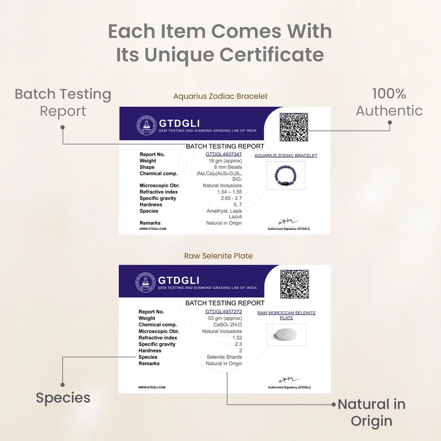 Prepaid orders are delivered on priority.Aquarians are thoughtful & future-focused, but emotional detachment & mental overload can affect clarity and balance. This Aquarius (कुंभ राशि) Amethyst & Lapis Lazuli Bracelet is designed to support emotional awareness & mental calm.