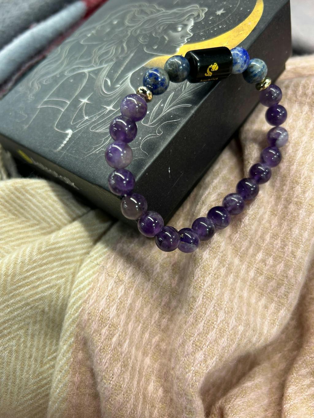 Aquarius (कुंभ राशि) Zodiac Amethyst & Lapis Lazuli Bracelet