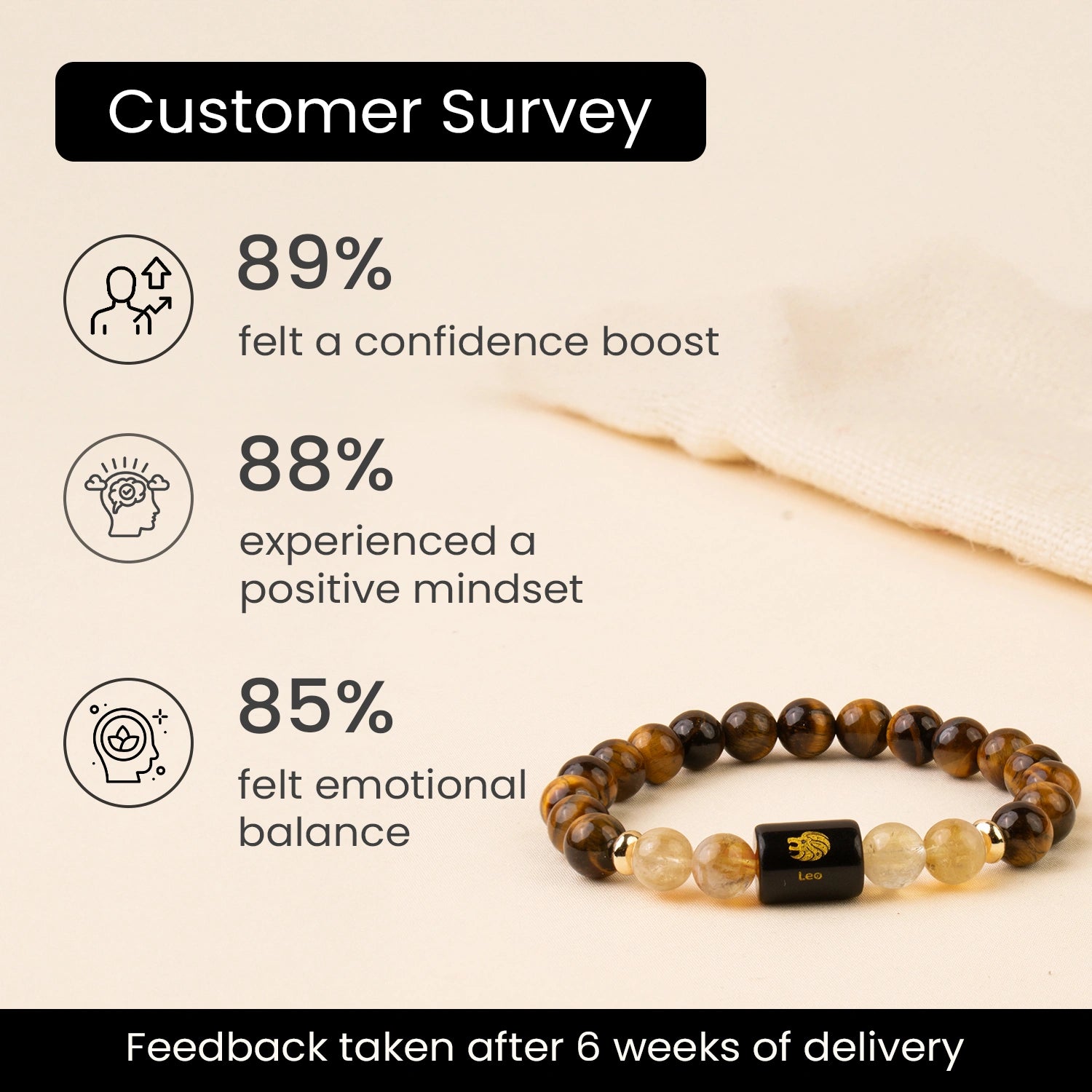 Wearing this bracelet can help you stay confident and focused throughout the day without feeling stressed. It supports clear thinking, self-belief, and positive energy.