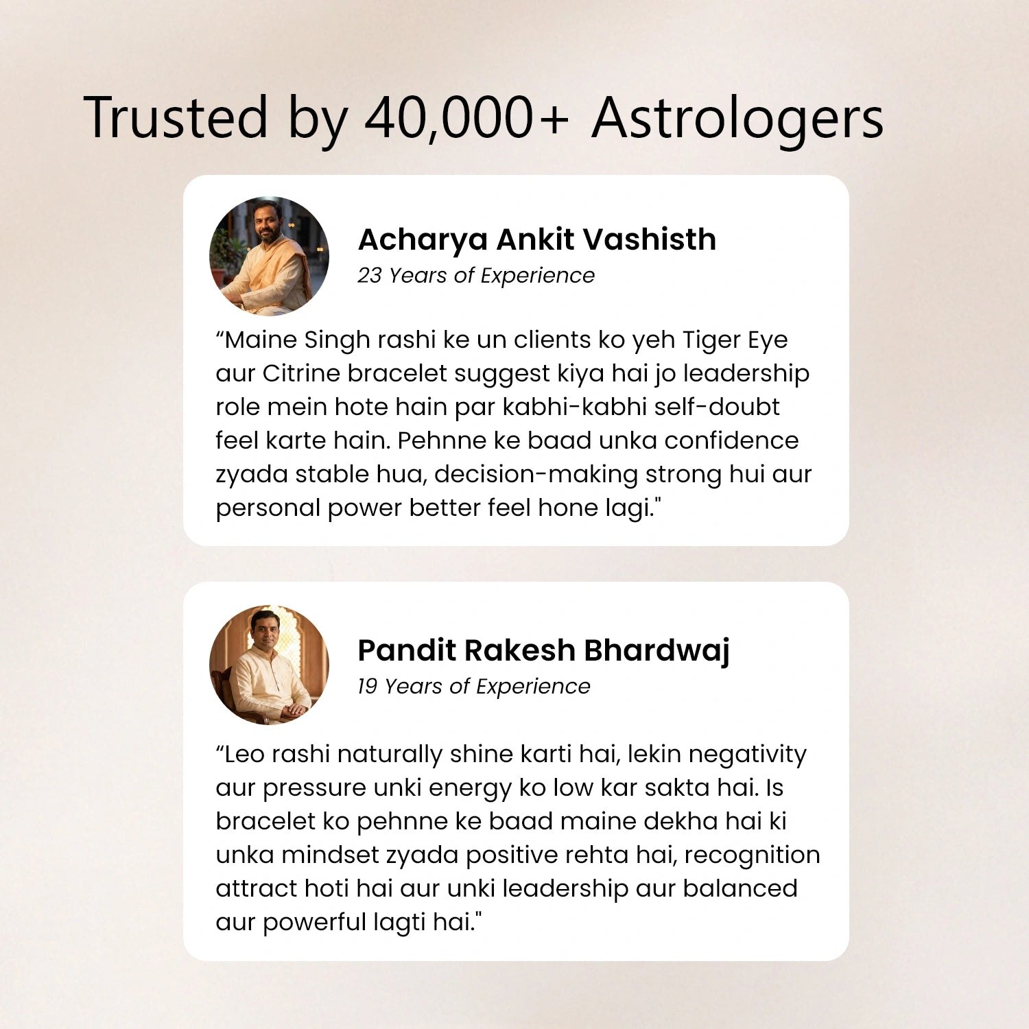Tiger Eye, the primary crystal, strengthens courage and confident decision-making. Citrine, the supporting crystal, boosts positivity, motivation, and a success-focused mindset.