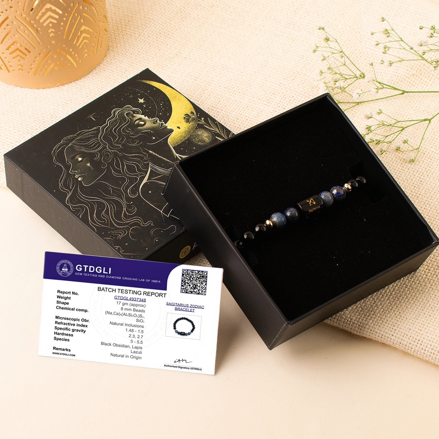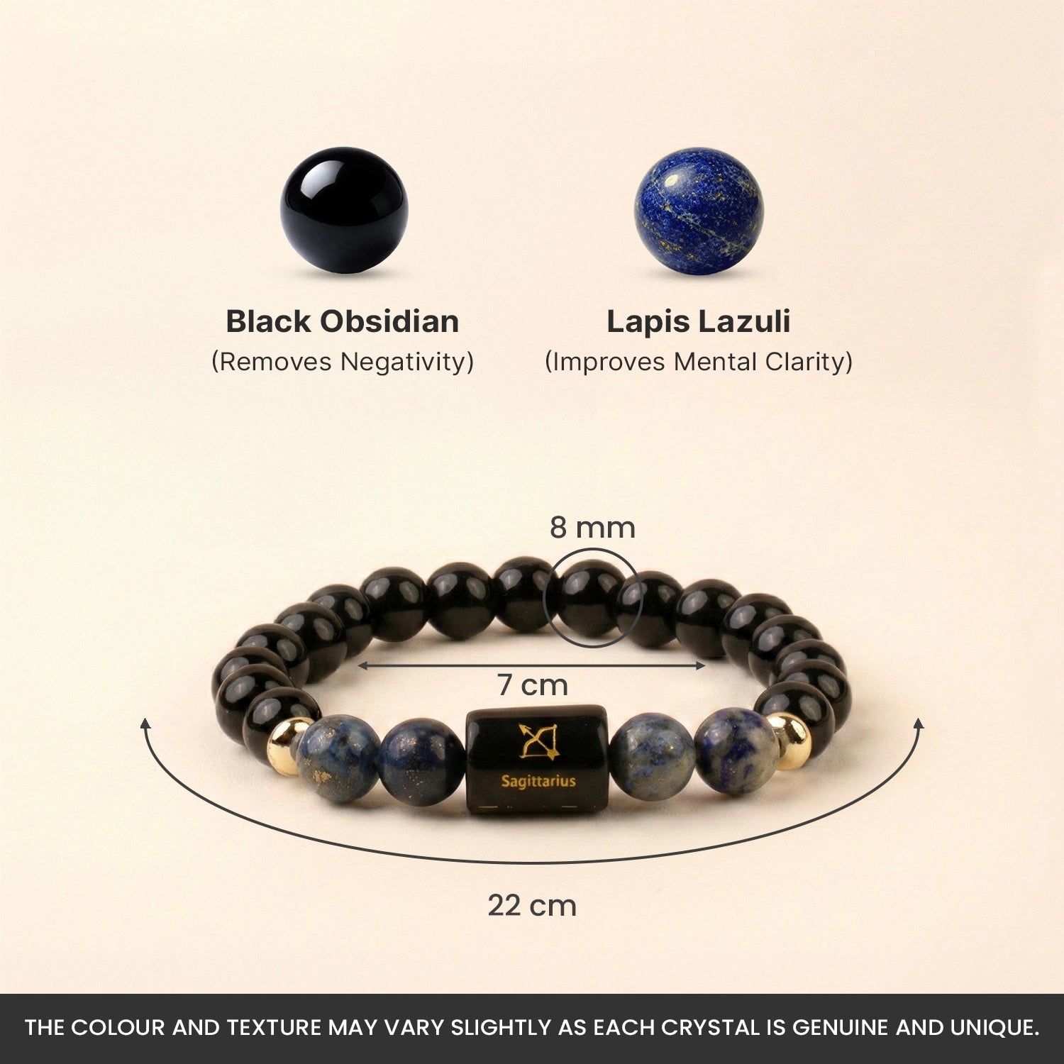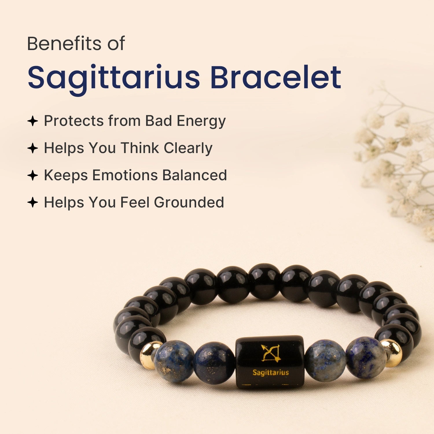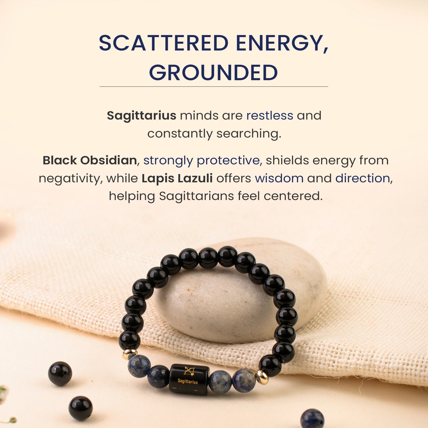 Prepaid orders are delivered on priority.Sagittarians are adventurous and freedom-loving, but a restless mind, scattered energy, and surrounding negativity can sometimes affect focus and clarity. The Sagittarius (धनु राशि) Zodiac Black Obsidian & Lapis Lazuli Bracelet is designed to restore balance and mental clarity.
