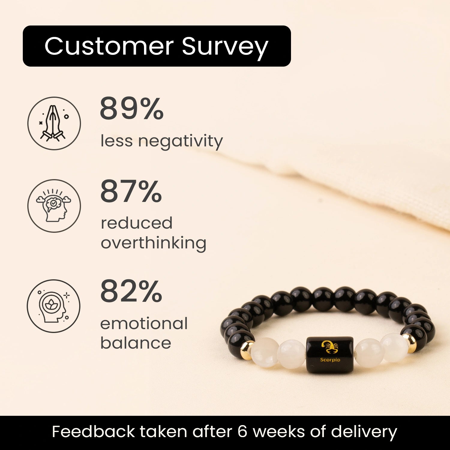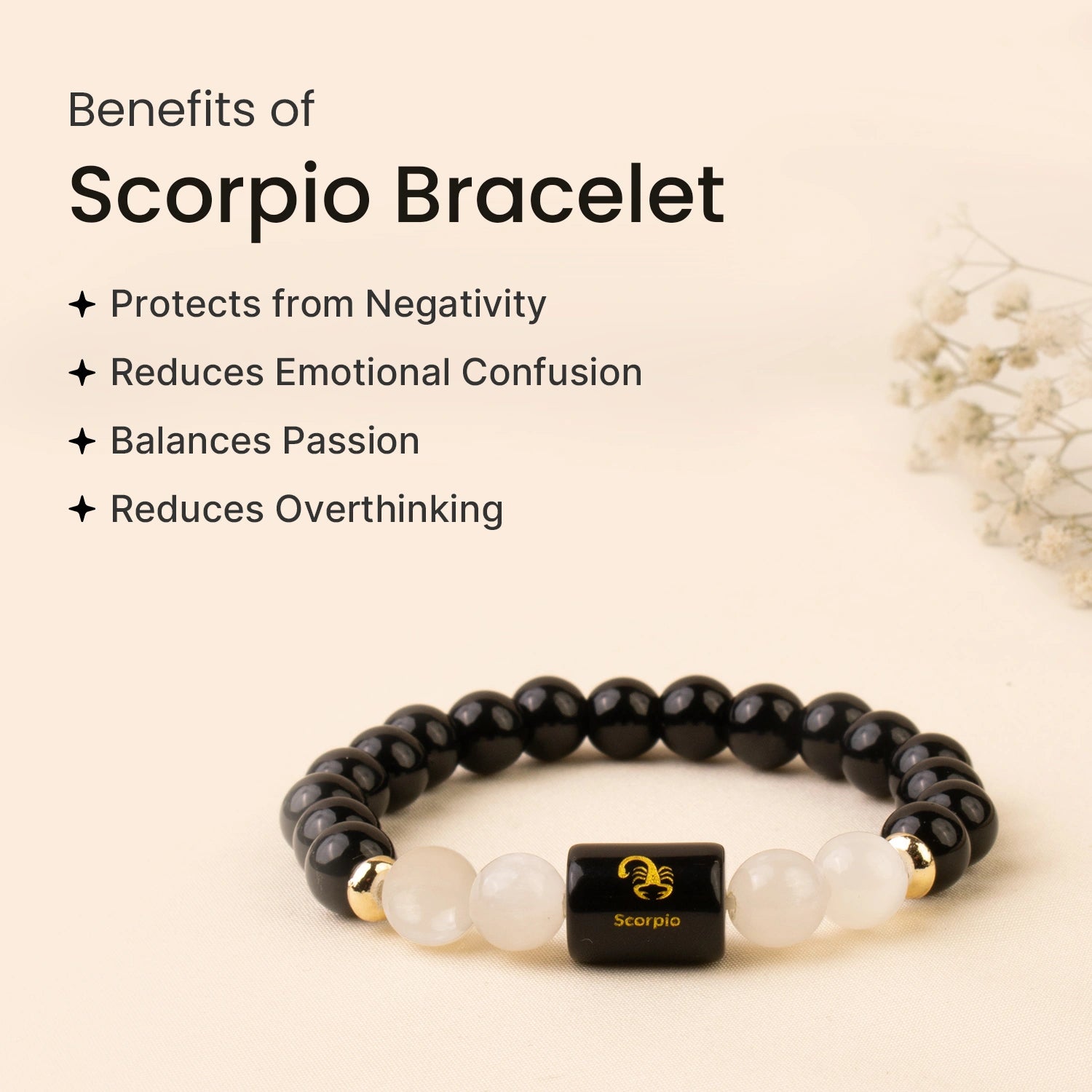 Prepaid orders are delivered on priority.Scorpios feel emotions deeply and often absorb stress and negativity from their surroundings. This Scorpio (वृश्चिक राशि) Zodiac Black Obsidian & Milky Quartz Bracelet is specifically designed to restore emotional balance and protect your energy.