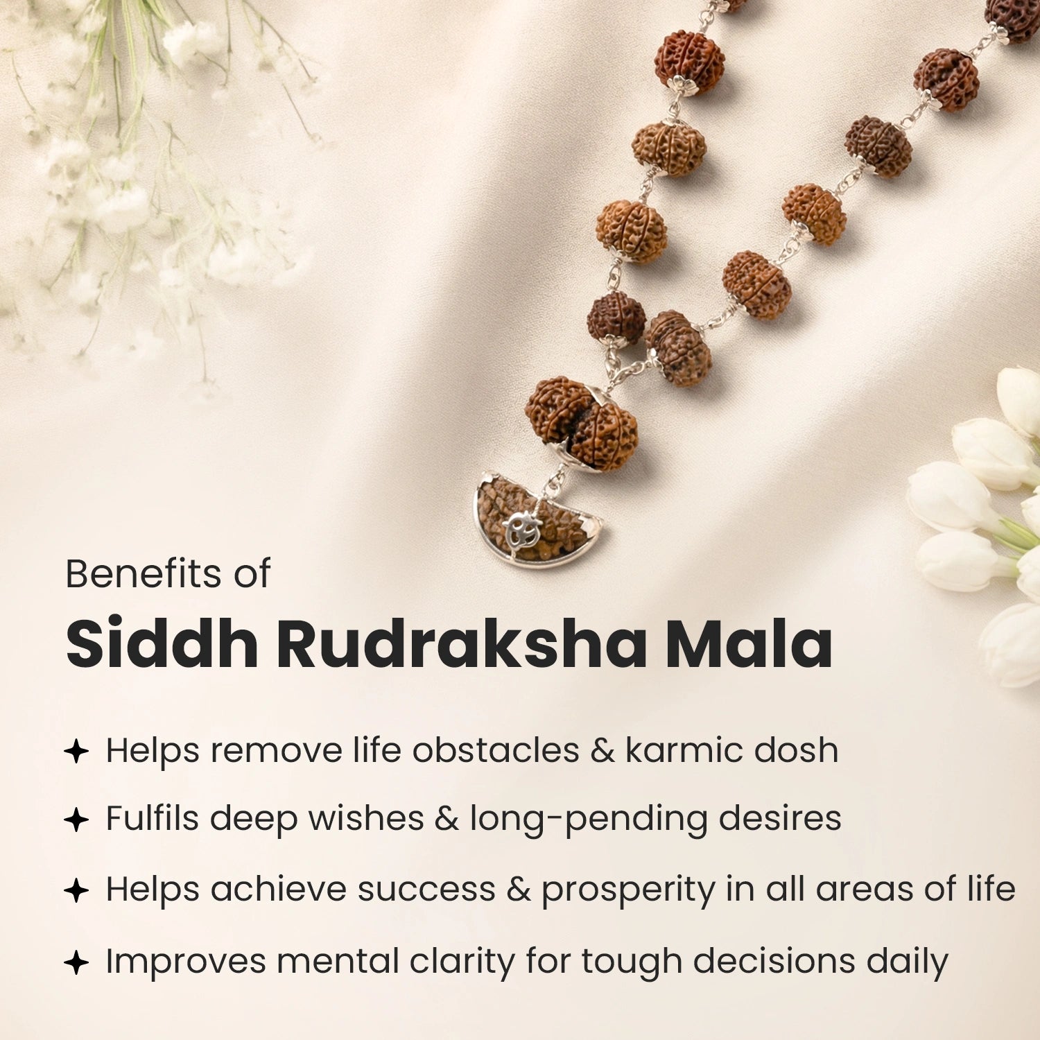 Wearing this mala daily reduces stress, removes negative energy, improves focus, and becomes even more powerful because pure 925 silver boosts the natural energy of Rudraksha. It also comes with a lab authenticity certificate for complete trust. Perfect for meditation, daily wear, or gifting.