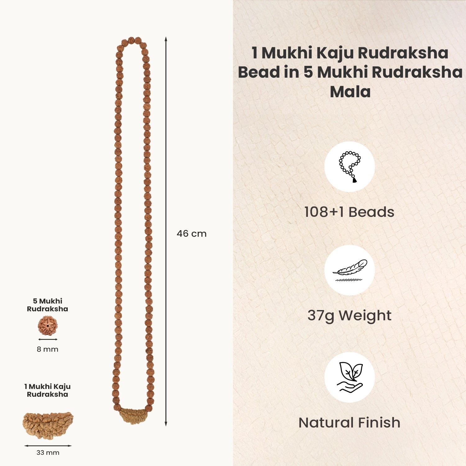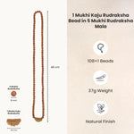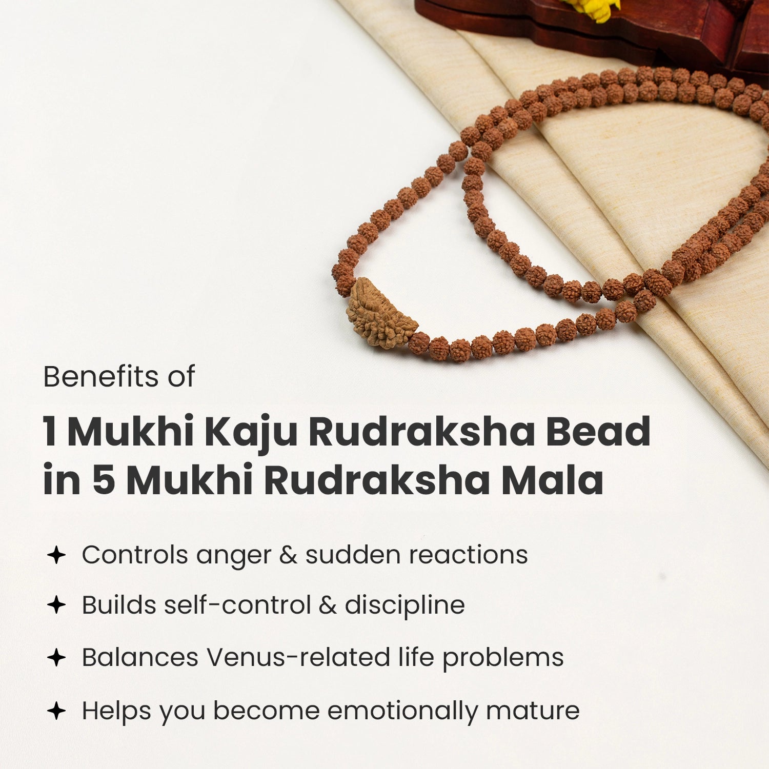 Prepaid orders are delivered on priority.This sacred Rudraksha mala carries the divine blessings of Lord Shiva and is designed to bring peace, protection, and inner balance into daily life. It is crafted with 108 Nepali-origin 5 Mukhi Rudraksha beads, known for calming the mind, reducing stress, and supporting mental clarity. The mala also includes a Nepali-origin 1 Mukhi Kaju Rudraksha bead, which helps control anger, improve self-discipline, balance Venus-related life challenges, and support emotional maturity.