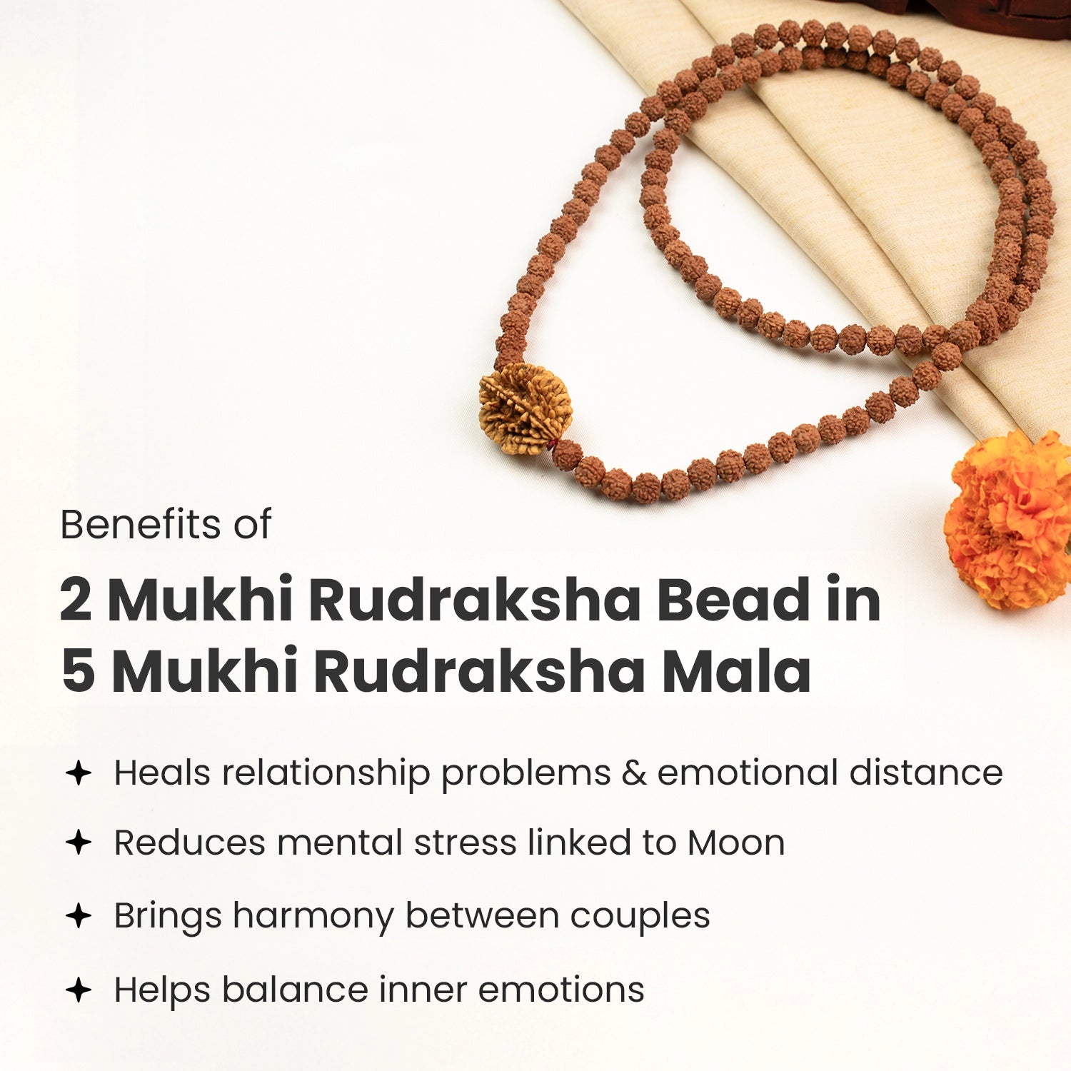 When you wear this mala, your heart feels lighter, your emotions become more balanced, and you experience greater peace and harmony in your relationships and family life. This mala is ideal for anyone seeking emotional stability, stronger bonds with loved ones, reduced stress, and harmony at home.