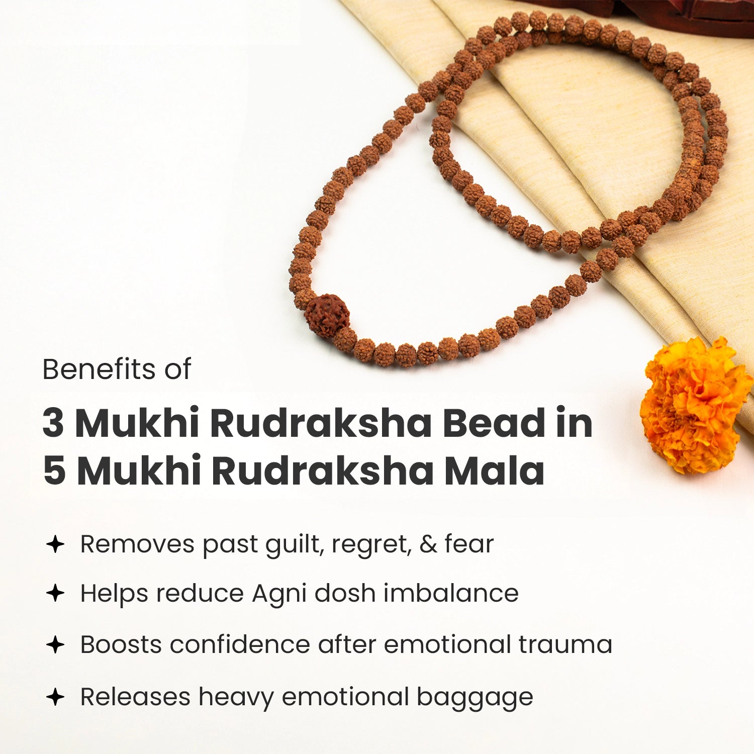 When you wear this mala, you feel a fresh sense of confidence and inner calm, as old guilt, fears, and emotional burdens begin to fade. This mala is ideal for anyone seeking emotional healing, renewed courage, and mental clarity.