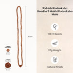 3 Mukhi Rudraksha bead in 5 Mukhi Rudraksha Mala