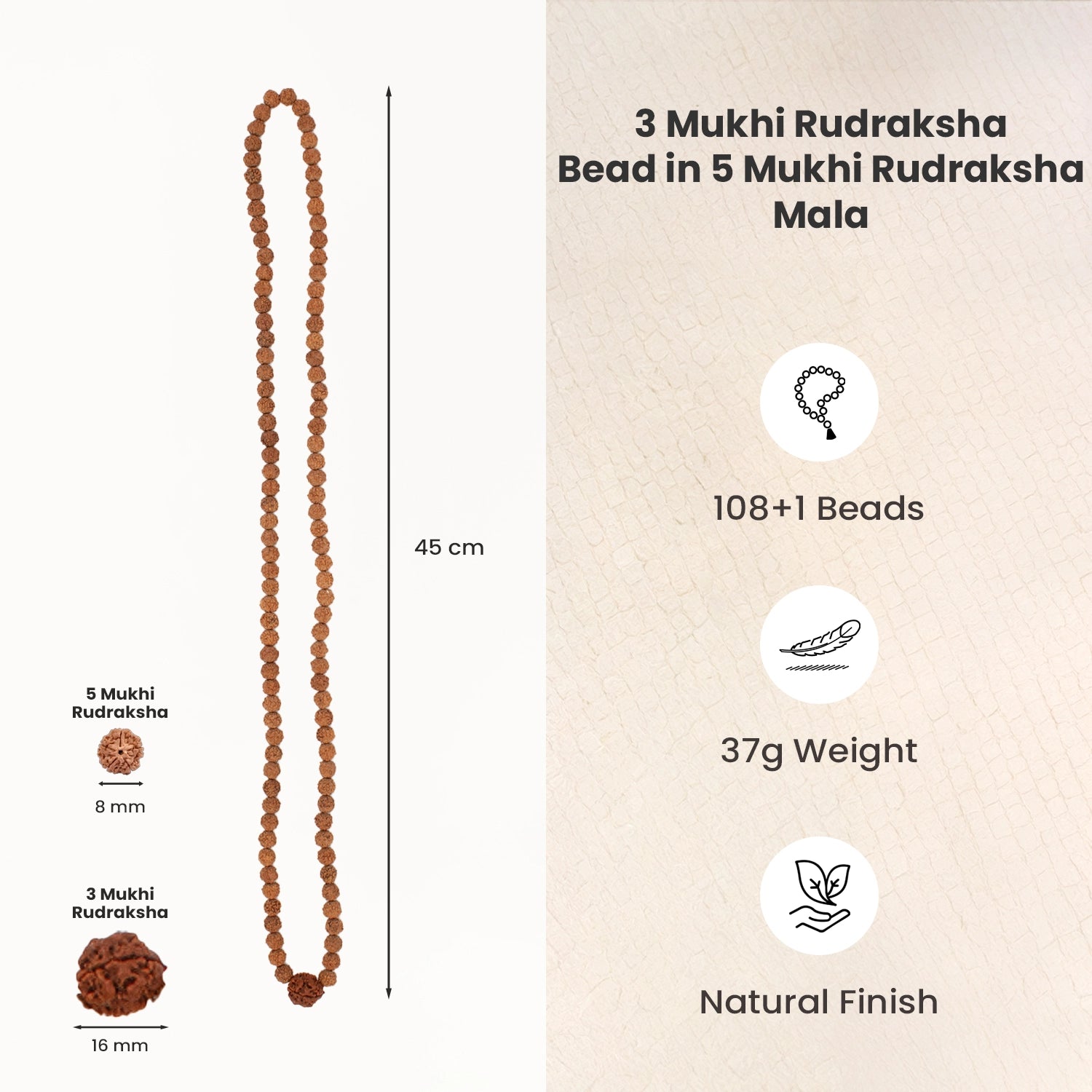 Prepaid orders are delivered on priority.This sacred Rudraksha mala carries the pure energy of Lord Shiva. It is made with 108 powerful Nepali-origin 5 Mukhi Rudraksha beads that bring calmness, protection, and balance, along with Nepali-origin 3-Mukhi Rudraksha, known for its connection with Agni Dev, the divine fire that burns past karmas, clears emotional baggage, and ignites inner strength.
