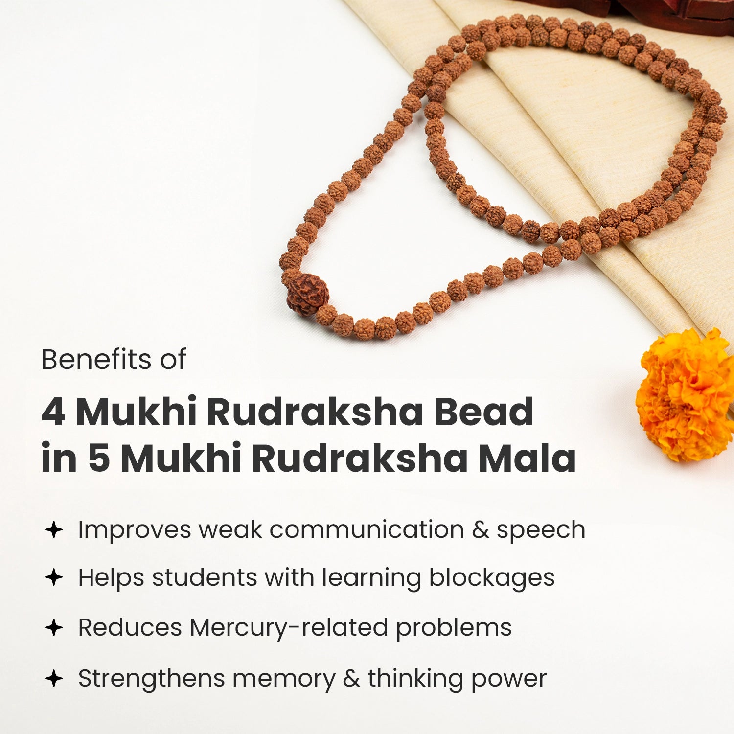 When you wear this mala, your mind becomes sharper, your speech becomes clearer, and you feel more confident in learning and expressing your thoughts. This mala is ideal for students, speakers, learners, or anyone seeking better focus, communication, memory, and mental clarity.