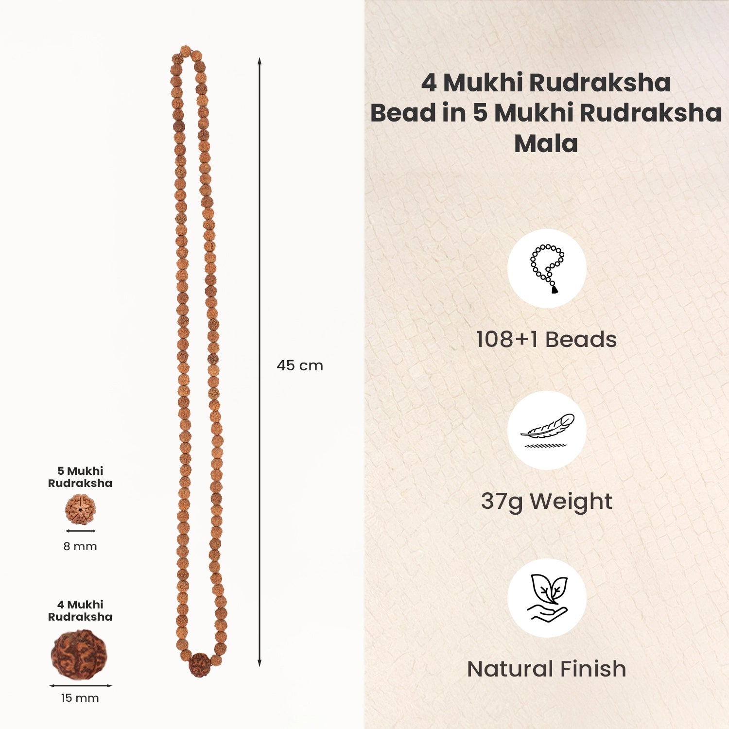 Prepaid orders are delivered on priority.This sacred Rudraksha mala carries the pure energy of Lord Shiva. It is made with 108 powerful Nepali-origin 5 Mukhi Rudraksha beads that bring calmness, protection, and balance, along with Nepali-origin 4 Mukhi Rudraksha, known for its blessings of Lord Brahma that support wisdom, clear communication, strong memory, and sharper thinking.