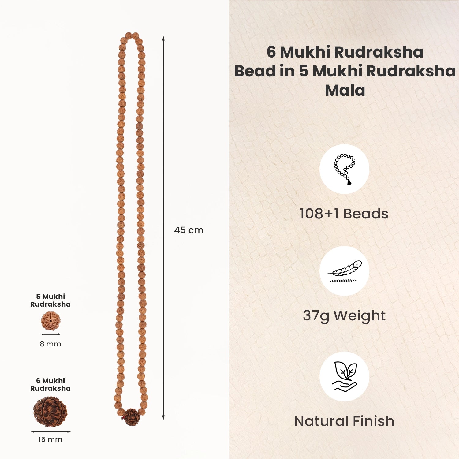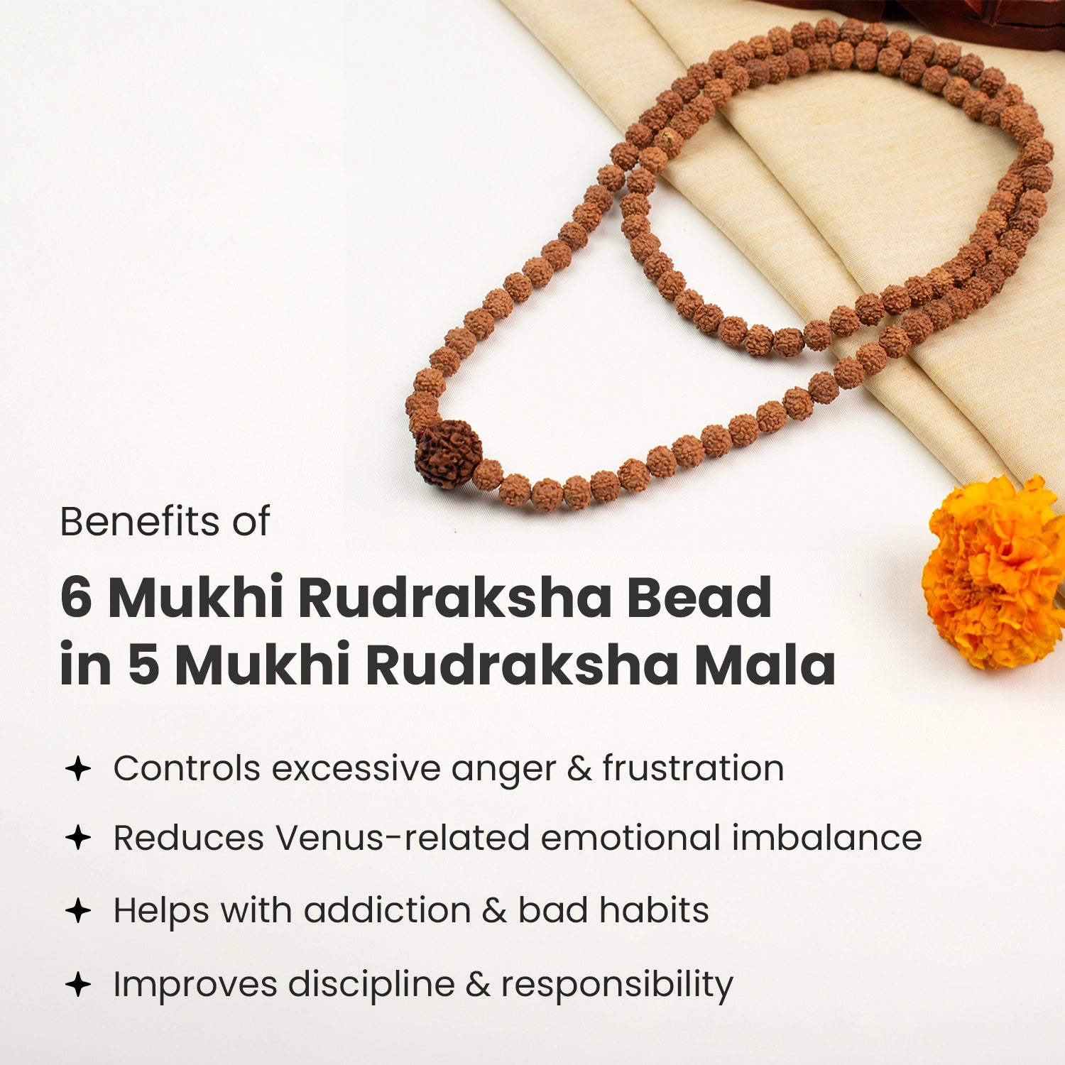 6 Mukhi Rudraksha bead in 5 Mukhi Rudraksha Mala