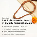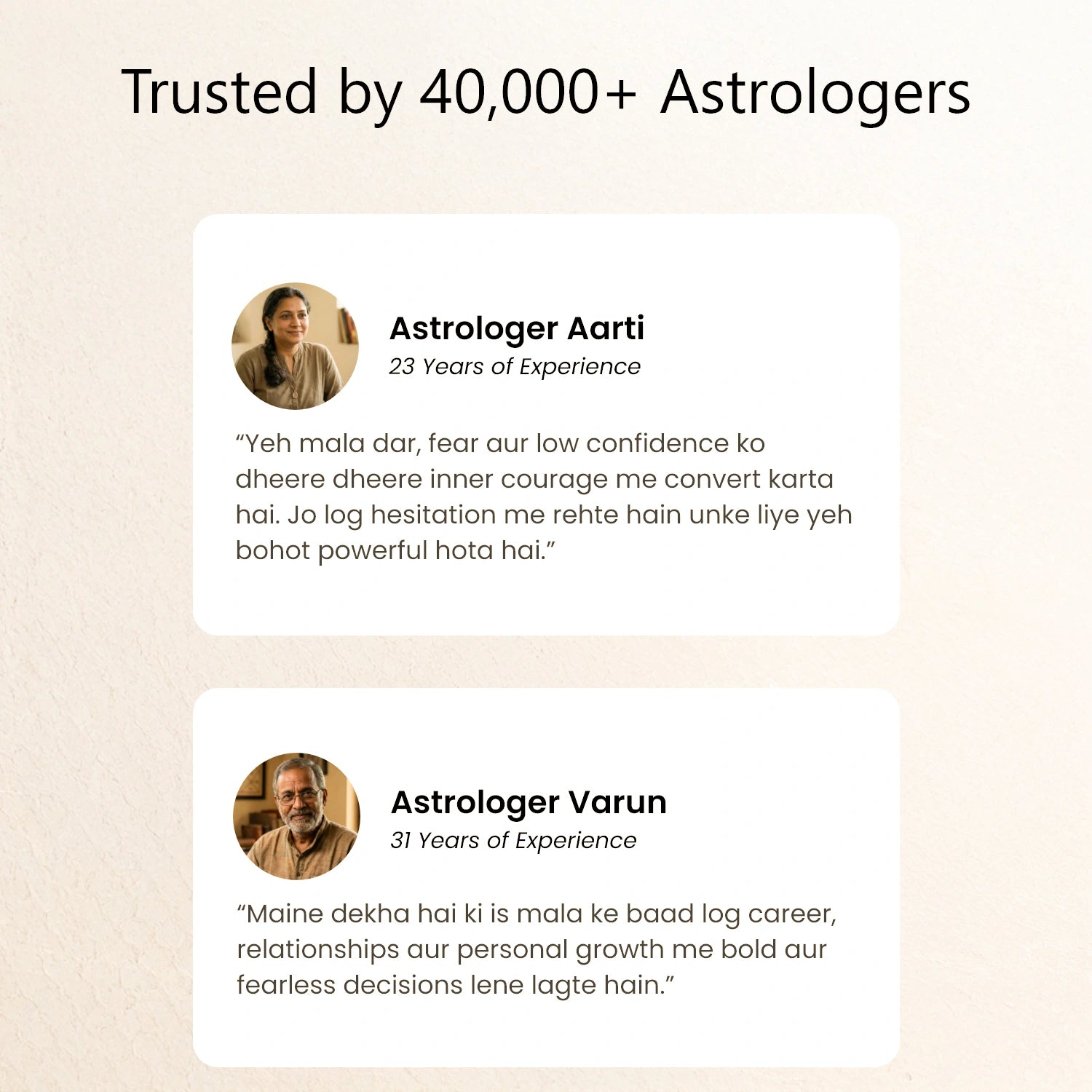 The 9 Mukhi Rudraksha represents the powerful energy of Nav Durga and is believed to help remove fear, build confidence, and bring emotional stability. When you wear this mala, your fears and insecurity begin to fade, your courage and mental strength grow, and you feel more confident facing life’s challenges.
