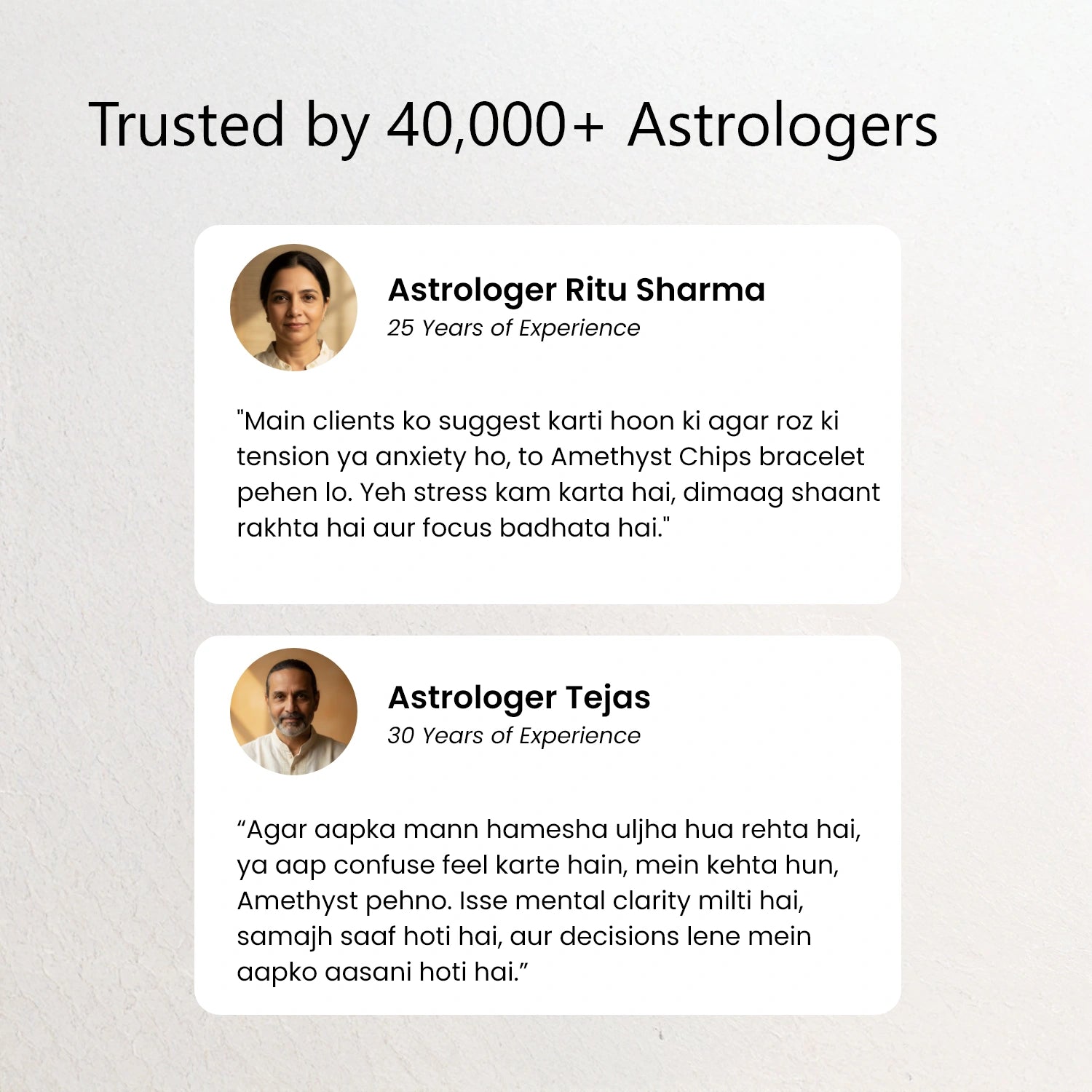Prepaid orders are delivered on priority.The Amethyst Chips Bracelet is made with natural amethyst stones, known for their rich violet colour and calming energy. Amethyst is often called “Stone of Peace and Clarity” because it helps calm the mind, reduce stress, and bring emotional balance throughout the day.