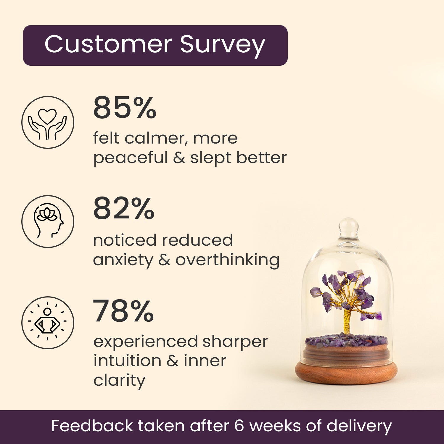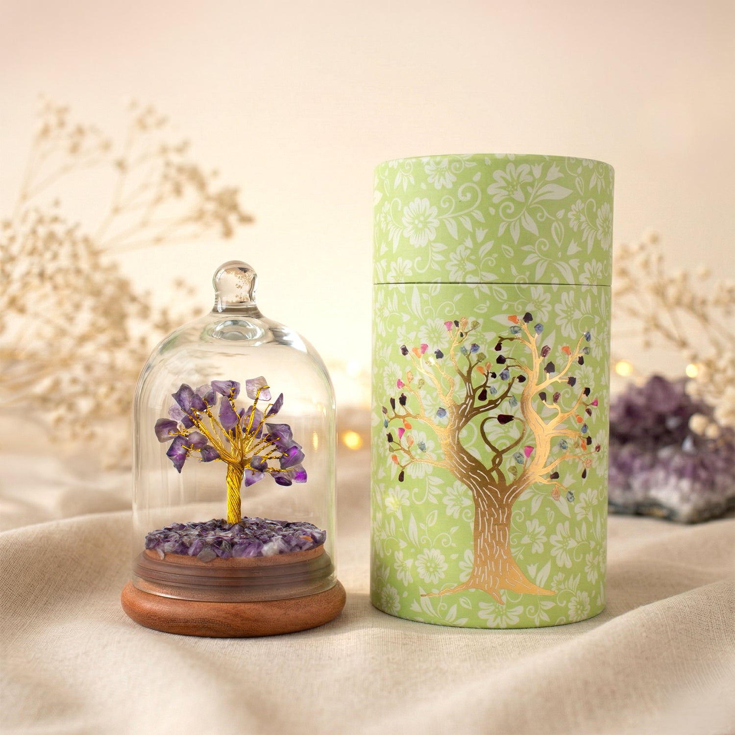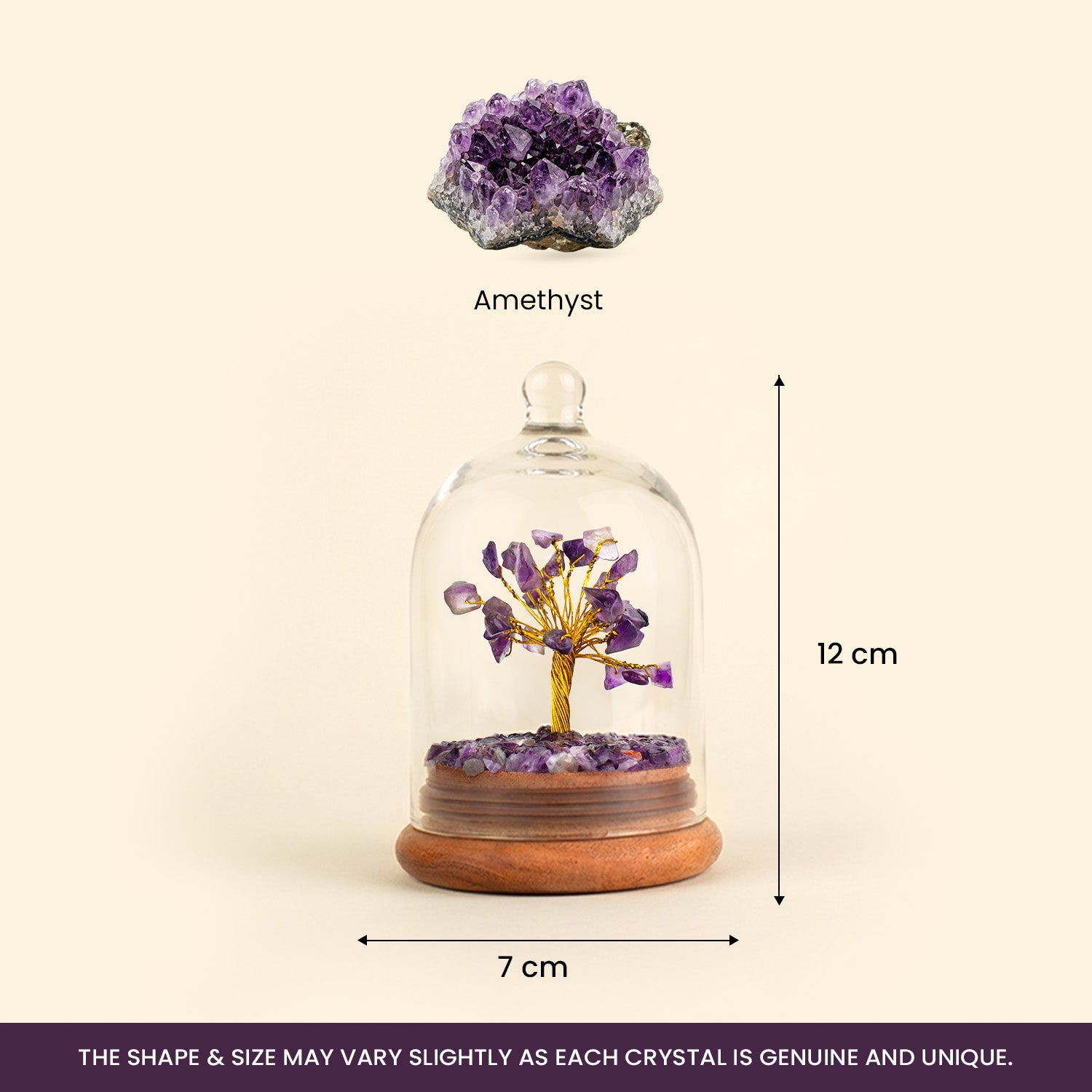 Its connection with the crown chakra enhances spiritual awareness and emotional healing. Perfect for your meditation area or bedroom, the Amethyst Dome Tree helps balance your energy, clear negative thoughts, and invite a deep sense of inner peace.