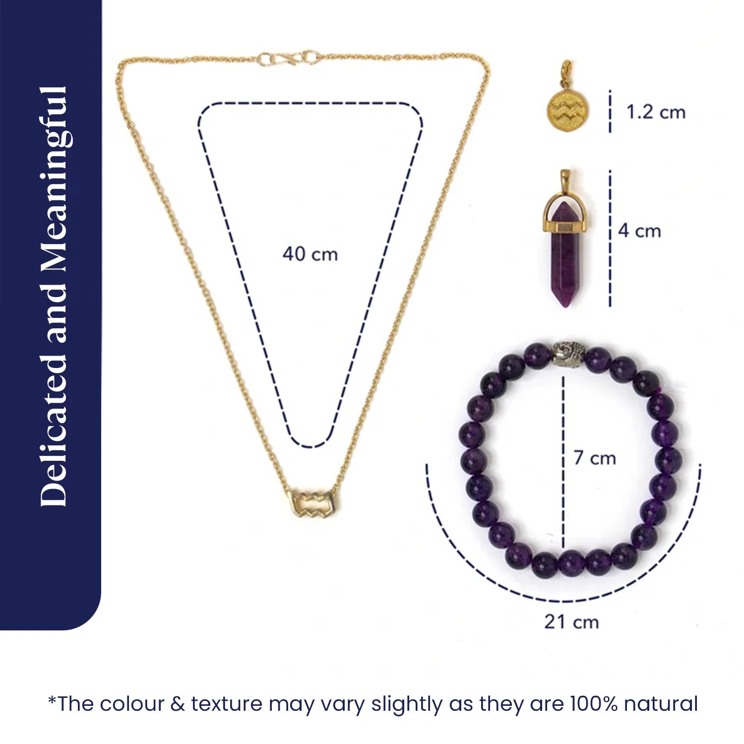 - Aquarius Zodiac Charm Necklace: A brass charm that connects you to your Kumbh Rashi energy and helps balance Saturn’s effects.