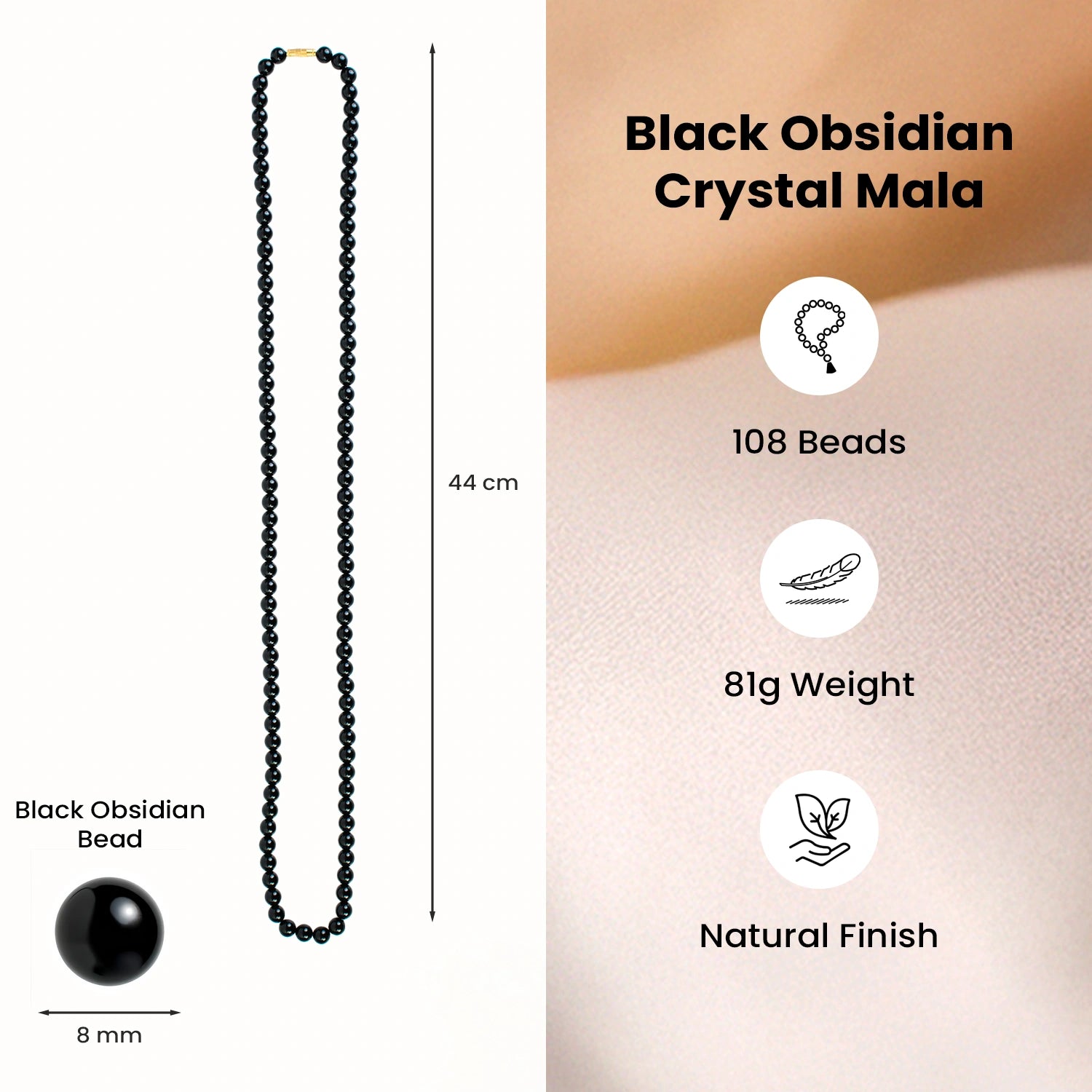 Prepaid orders are delivered on priority.This Black Obsidian Mala (8mm, 108 beads) is made from 100% authentic Black Obsidian crystal, also known as the “Stone of Protection and Grounding.” It helps protect from negative energy and emotional stress, allowing you to feel safe, stable, and mentally strong in daily life.