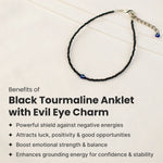 Black Tourmaline Anklet with Evil Eye Charm