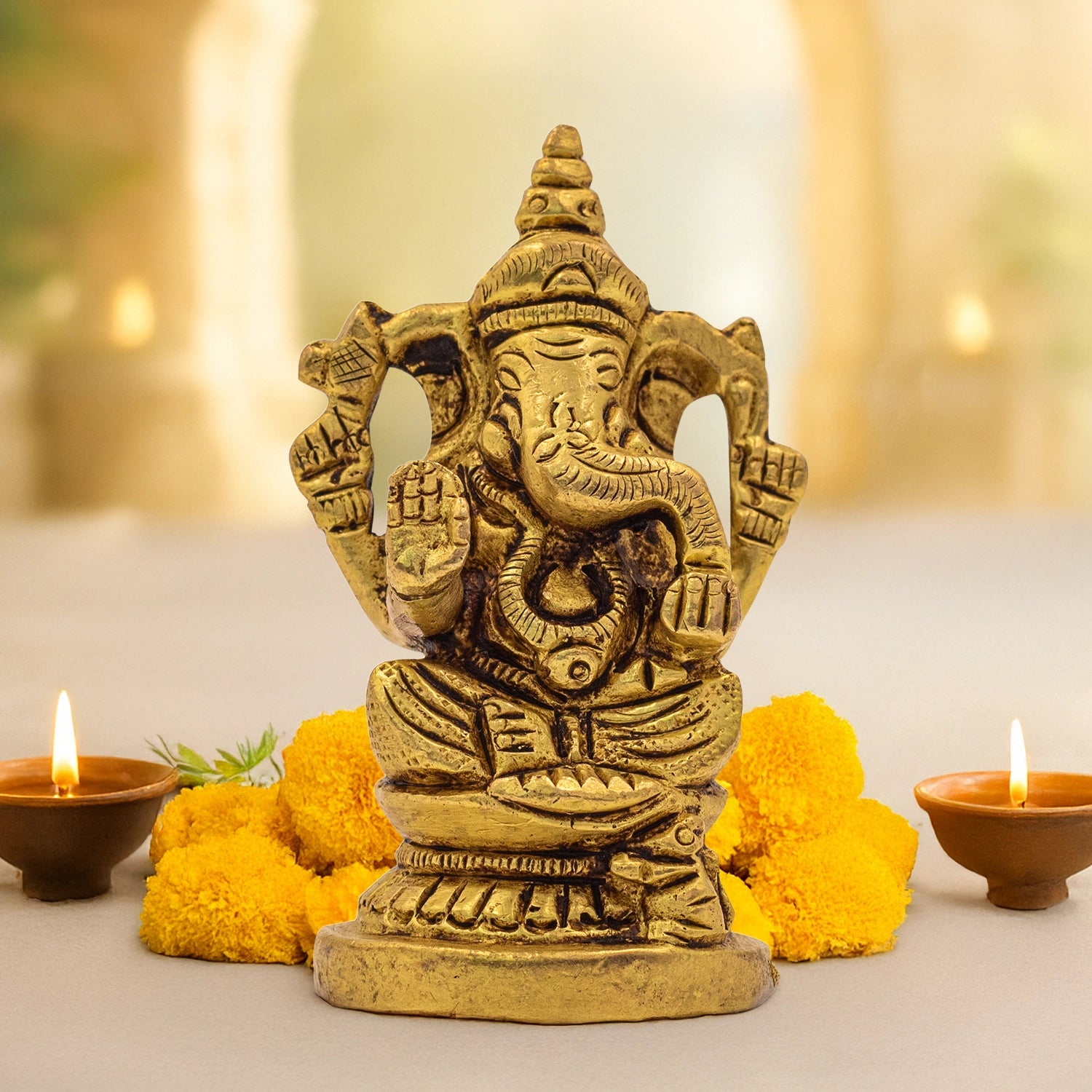 Brass Ganesh Ji MurtiInvite wisdom, prosperity, and divine grace into your space with this beautifully crafted Ganesh Ji Ki Murti in pure brass. Showcasing a serene seated posture, this Ganesh Ji/ Ganpati Murti is a powerful symbol of removing obstacles and attracting success. Whether you're looking for a Ganesh Ji Murti for home, office desk, or study table, its timeless charm and spiritual energy make it the perfect choice.