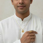 You can order a gold ring or pendant made specially for you. An advance of ₹10,000 per gram is required at the time of booking. The final price will be calculated on the day your jewellery is ready, based on: