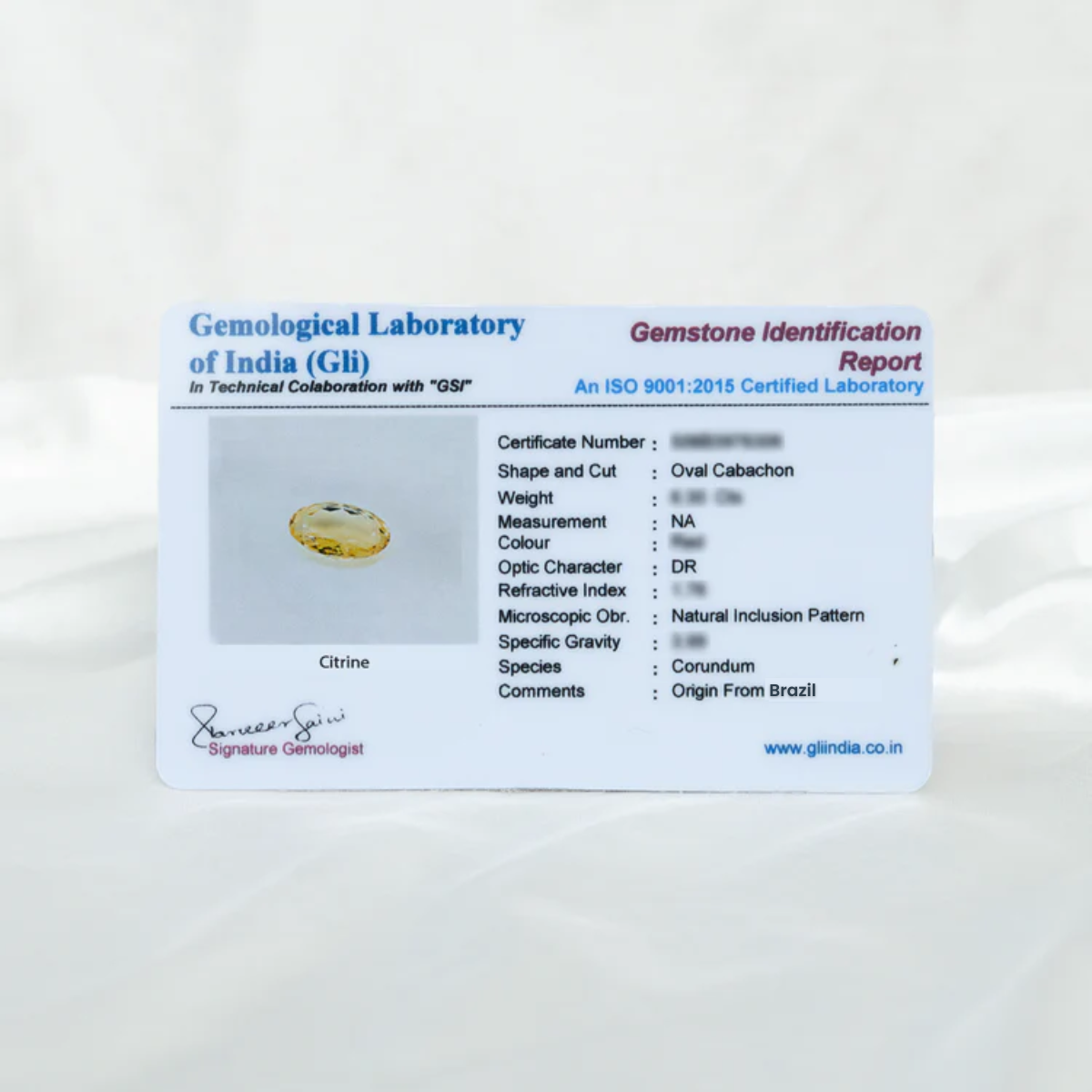 Prepaid orders are delivered on priority.Citrine (Sunela) is a bright yellow gemstone known to attract positivity, happiness, and abundance. It helps boost confidence, creativity, and energy for a joyful life. Our natural, certified citrines are carefully selected for their vibrant color and clarity.