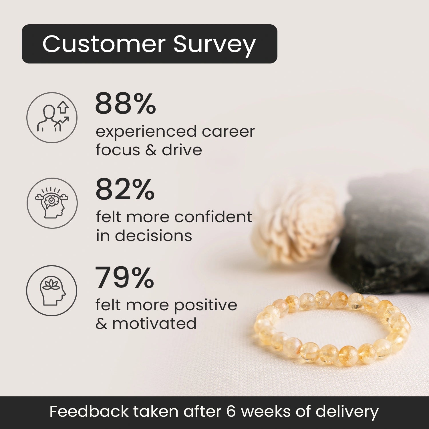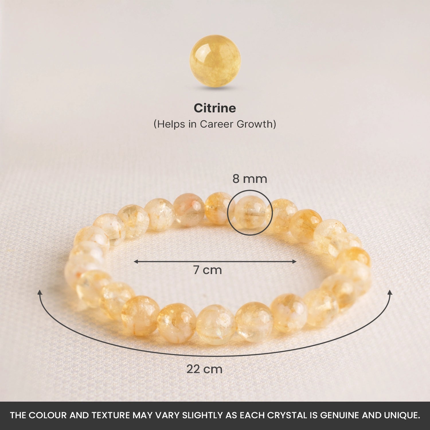 Benefits: • Supports Prosperity: Citrine is linked with financial growth and new opportunities. • Boosts Confidence: Encourages self-belief and positive thinking. • Improves Clarity: Helps in better focus and smart decision-making. • Positive Energy: Keeps your energy positive and light.
