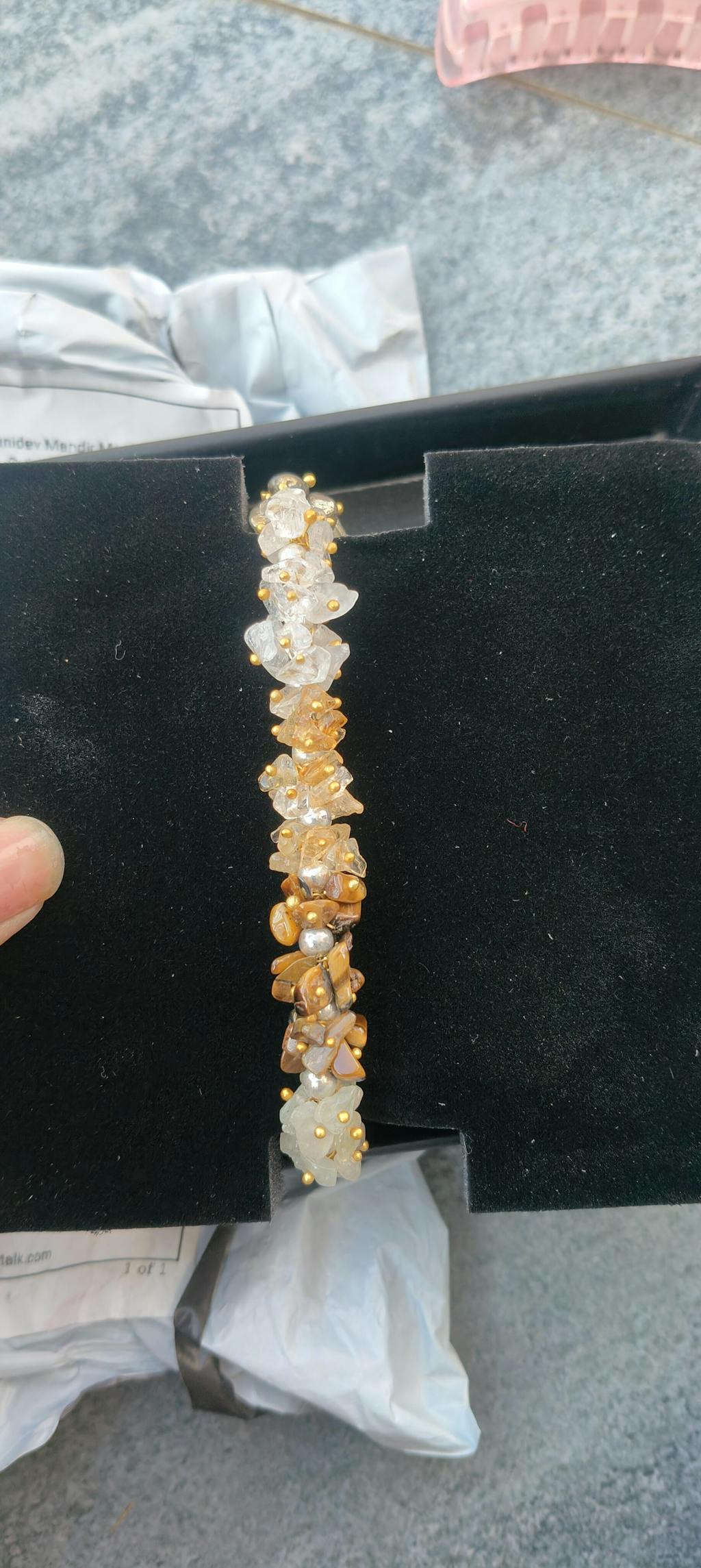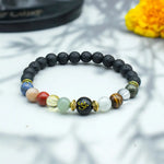 The Dhan Yog Bracelet uses powerful crystals, such as Tiger Eye, Pyrite, Citrine, Quartz, Green Aventurine, and Hematite, to attract wealth and build a success-oriented mindset.