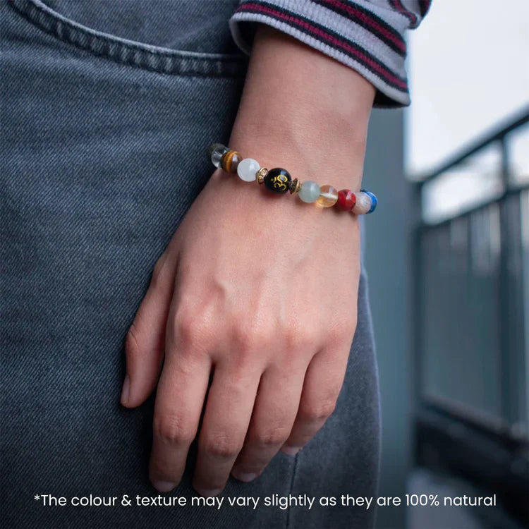 The Navgrah Shanti Bracelet combines nine powerful crystals representing the nine planets (Navagrahas). It clears old blockages and helps set a steady and balanced path for the new year ahead.