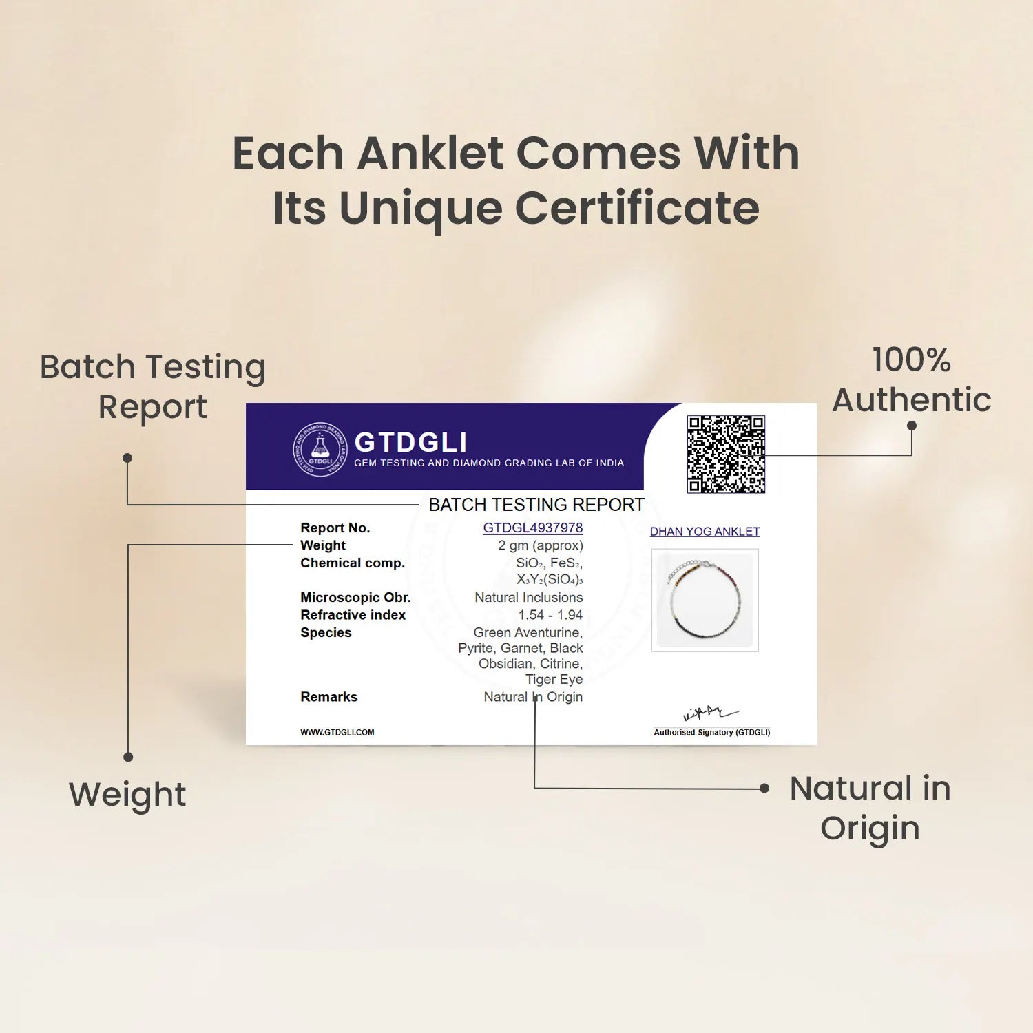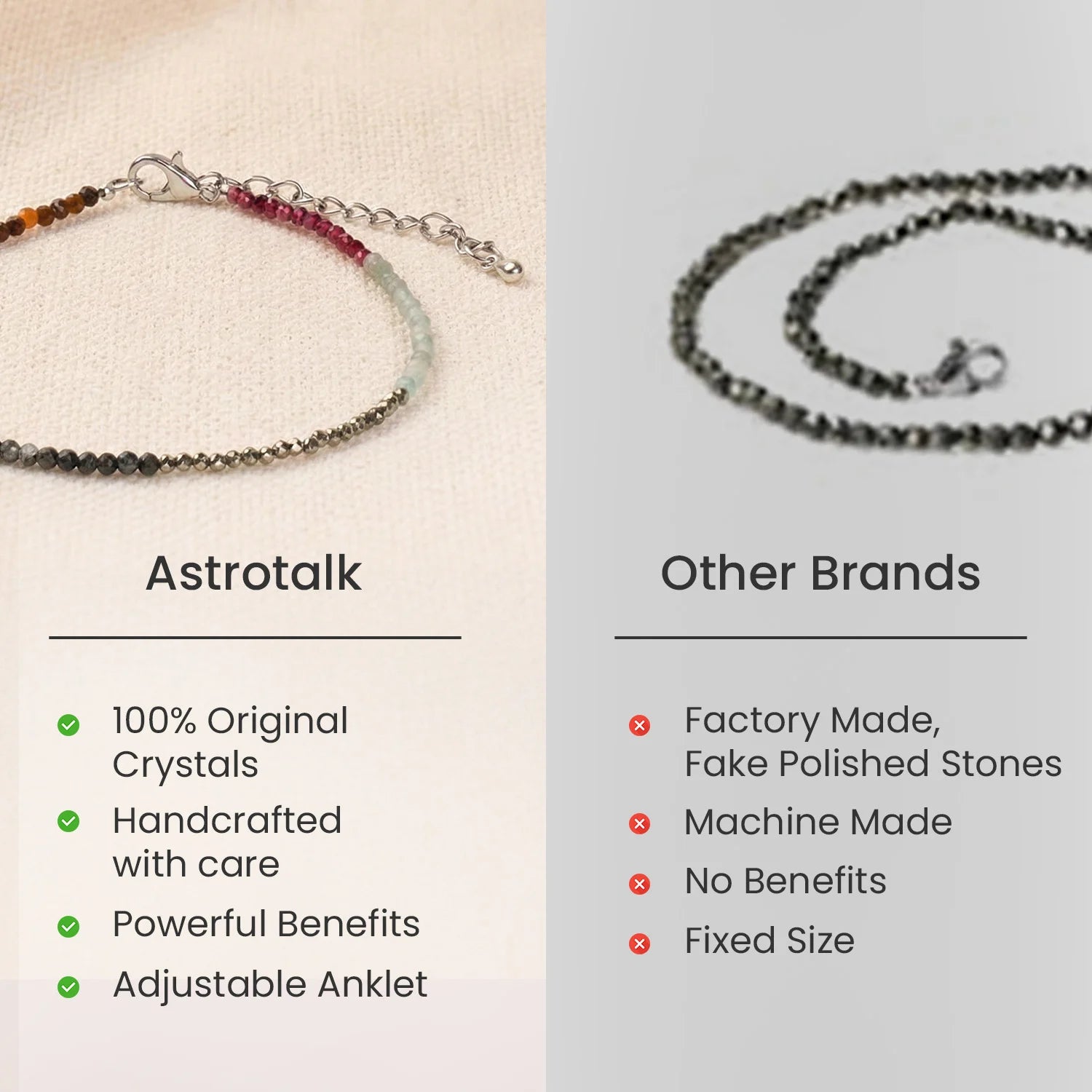 The Dhan Yog Anklet creates a clear path to money, luck, and steady progress. It combines powerful crystals, each adding a different kind of positive energy to your life.
