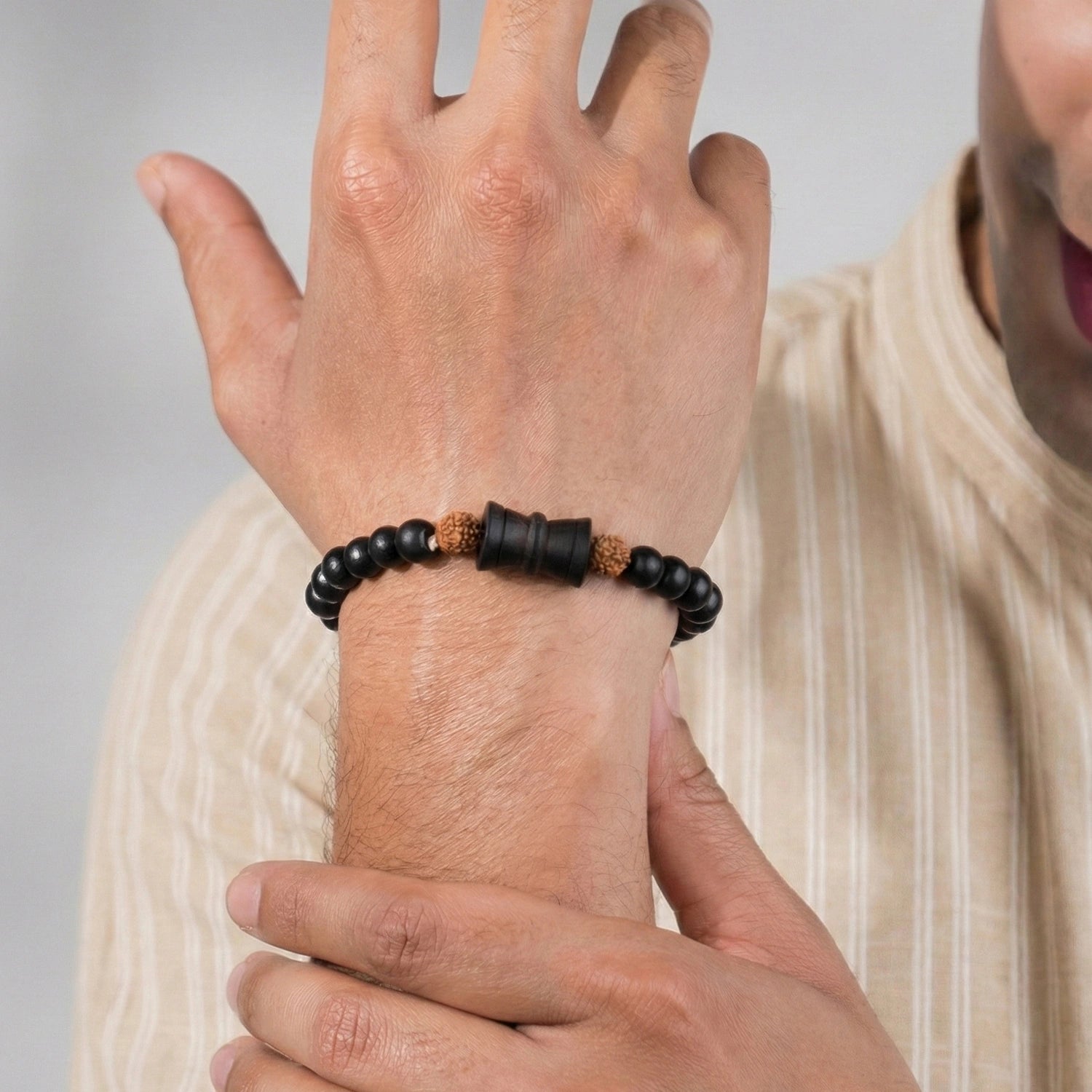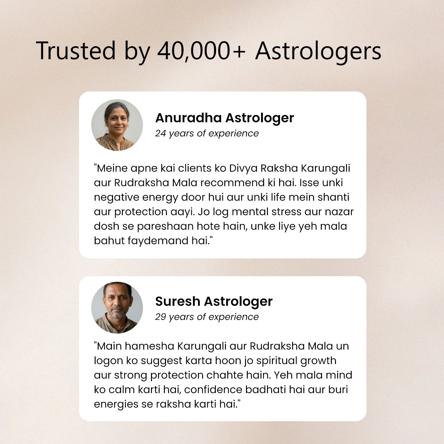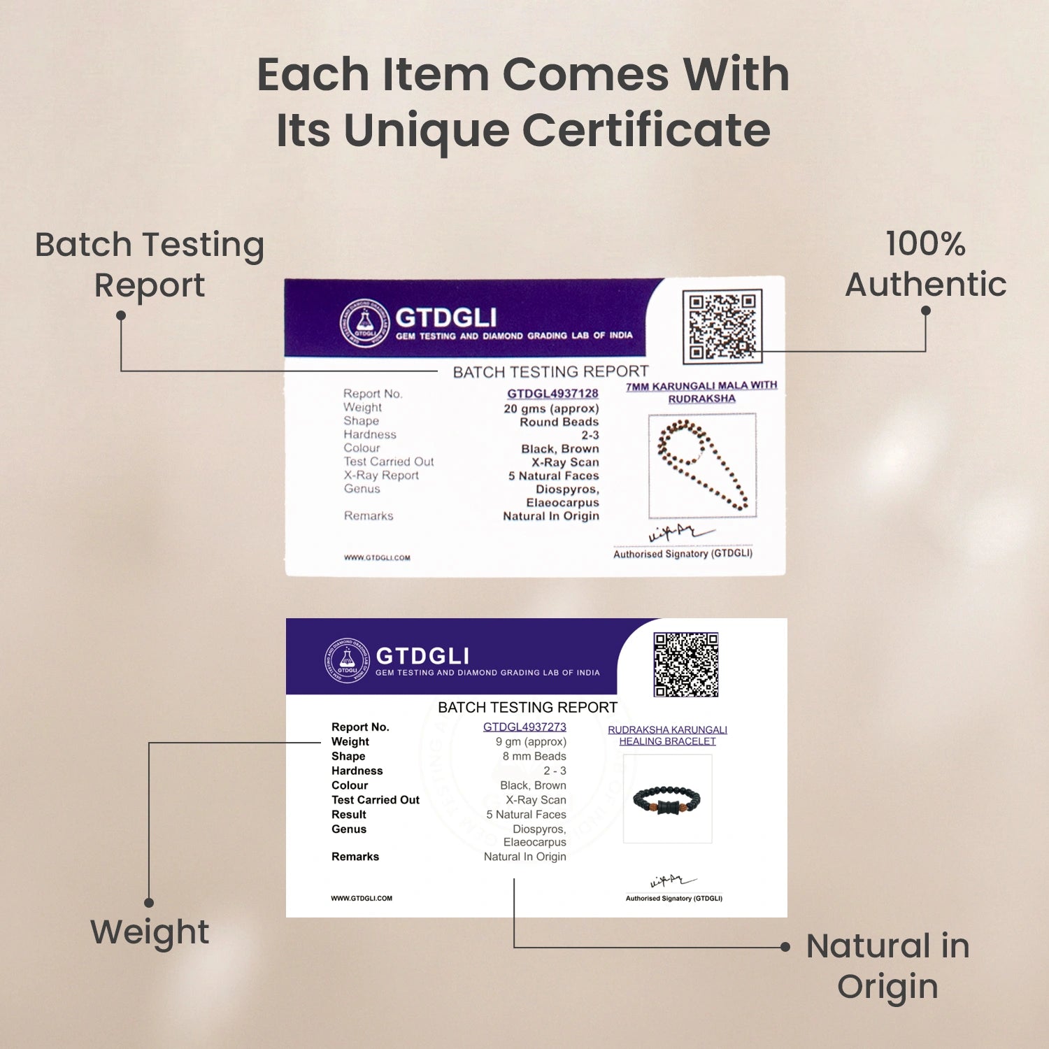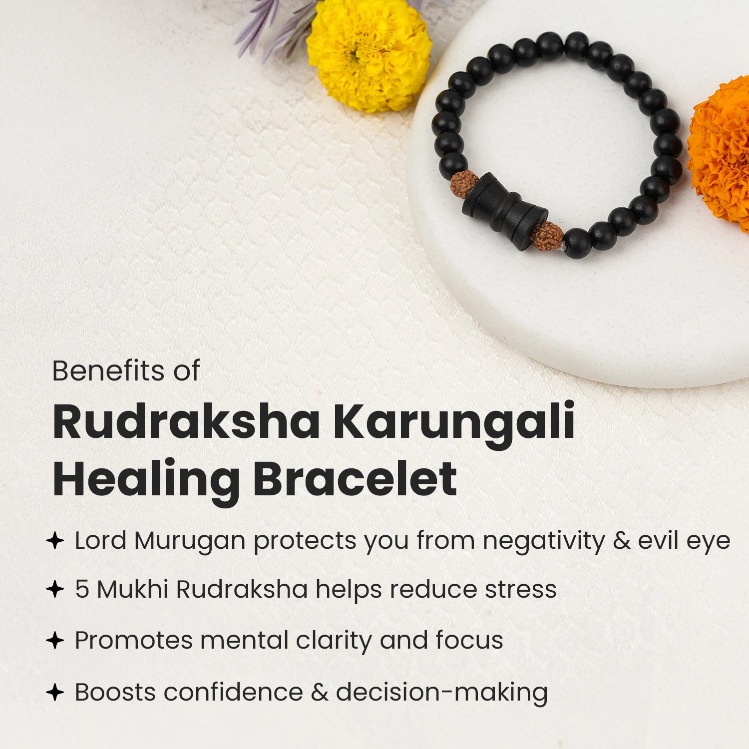 This combo includes the Divya Raksha Rudraksha & Karungali Mala with Silver Capping and the Rudraksha Karungali Healing Bracelet with Damru. Together, they bring the grounding power of Karungali (Black Ebony Wood), the divine blessings of 5 Mukhi Rudraksha, and the sacred symbolism of Shiv Ji’s Damru.
