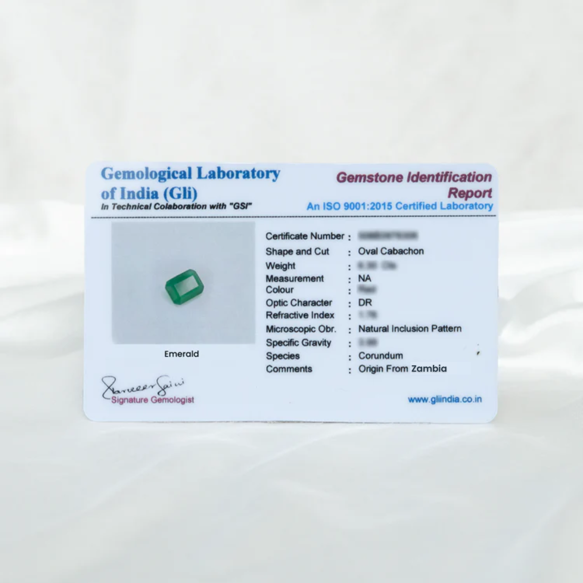 Emerald is usually worn in Gold, Silver, or Panchdhatu rings or pendants. Panchdhatu metal can lose color with frequent contact with water, sweat, or perfume. Keep the ring dry to maintain its shine for a longer time.