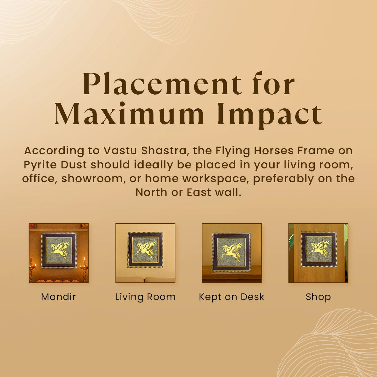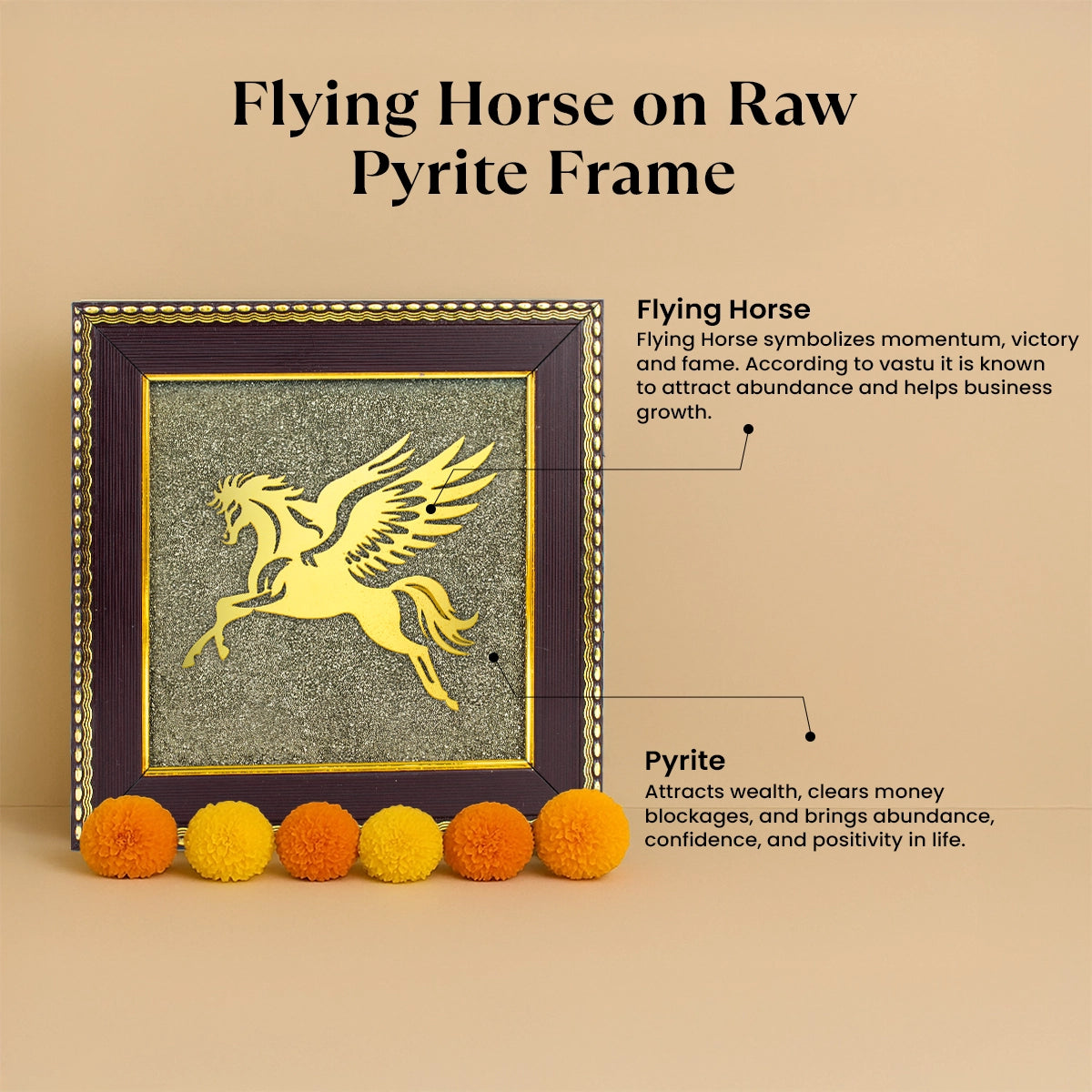 Get estimated delivery dateThe Flying Horse on Raw Pyrite Frame is a symbol of speed, growth, and victory. Horse represent power, confidence, and success, while Raw Pyrite is known as the "stone of wealth" that attracts money, luck, and positive energy. Together, they remove obstacles, bring new opportunities, and keep you motivated to achieve your goals. This frame is a great choice for career growth, business success, and overall prosperity at home or office.