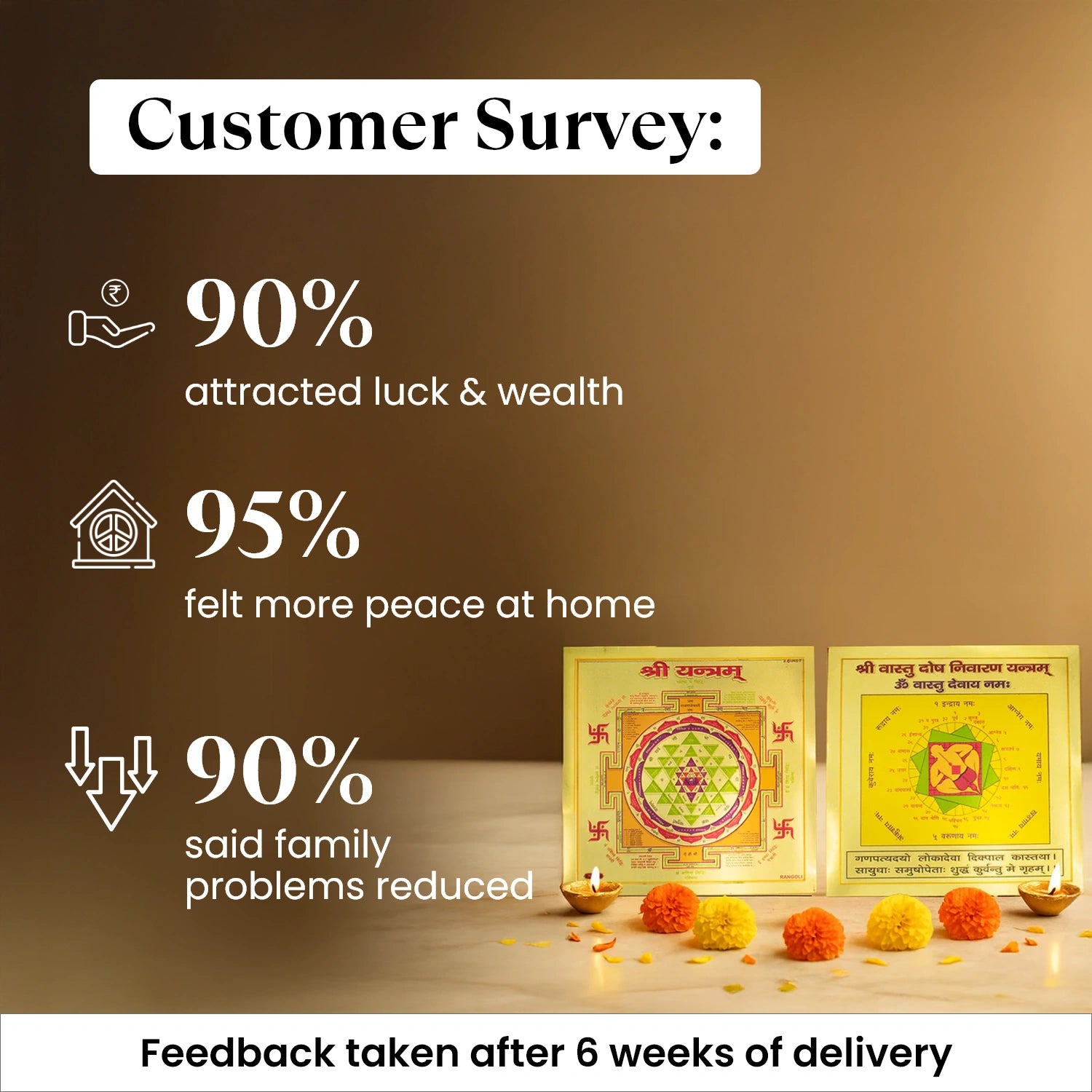 Get estimated delivery dateInvite harmony, prosperity, and positive energy into your home with the Ghar Ki Samriddhi Yantra Combo (6×6 inch). This combo features the Shree Yantra (6×6 inch) and the Vastu Dosh Nivaran Yantra (6×6 inch), designed to balance energies and create a peaceful, thriving environment. While the Shree Yantra attracts wealth, happiness, and overall abundance, the Vastu Dosh Nivaran Yantra corrects energy imbalances in your home, removing obstacles and enhancing positivity.