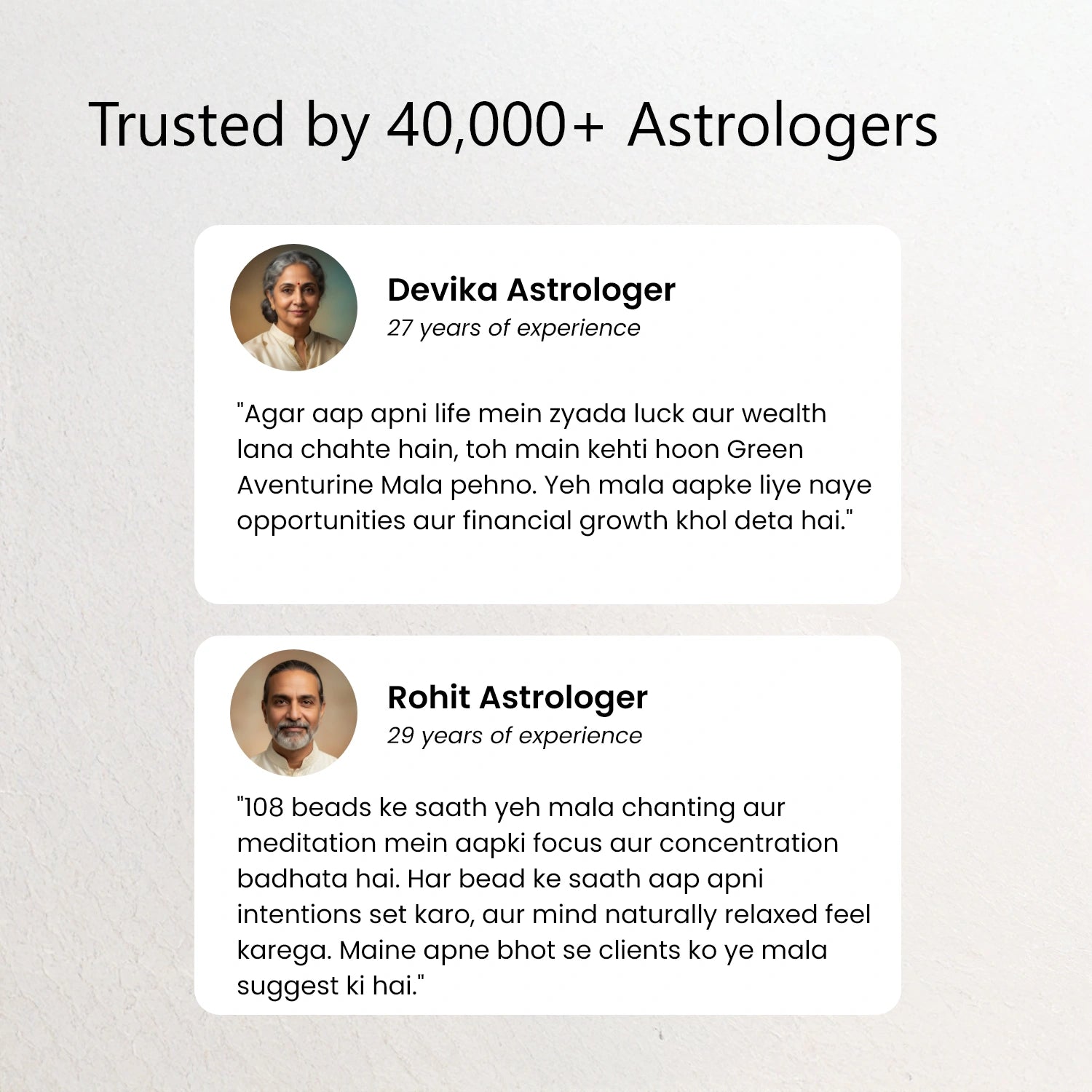 The mala has 108 beads, a sacred number used for chanting and meditation. Moving each bead slowly helps calm your mind and keep your thoughts steady. The extra guru bead reminds you to pause and set your intention, whether it is luck or success.