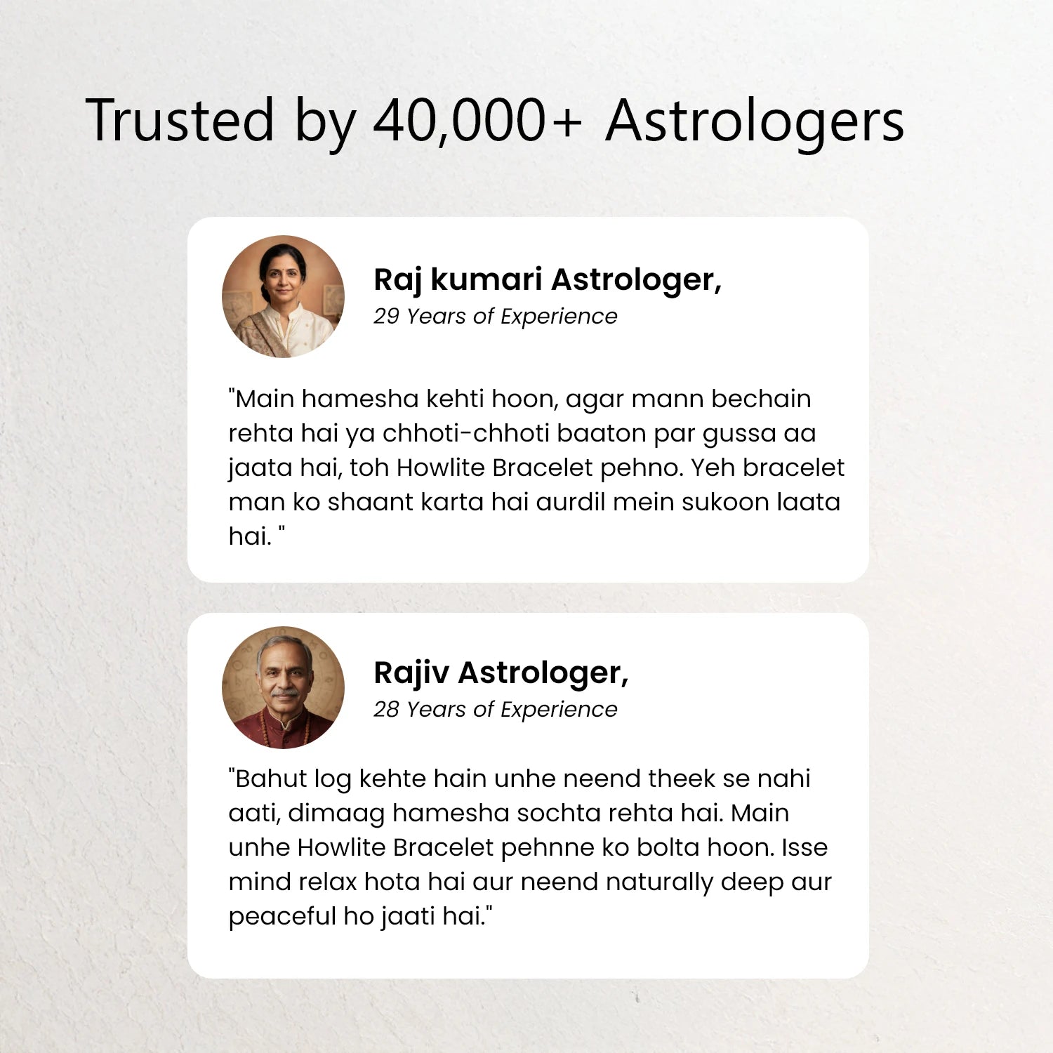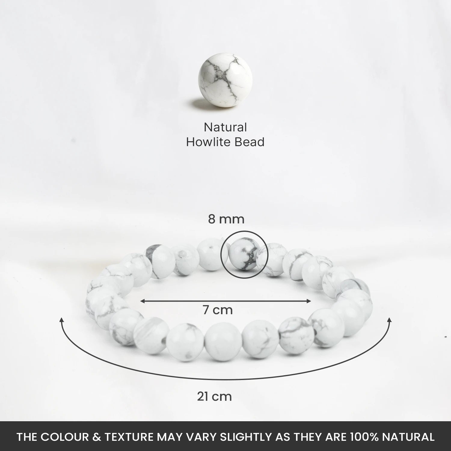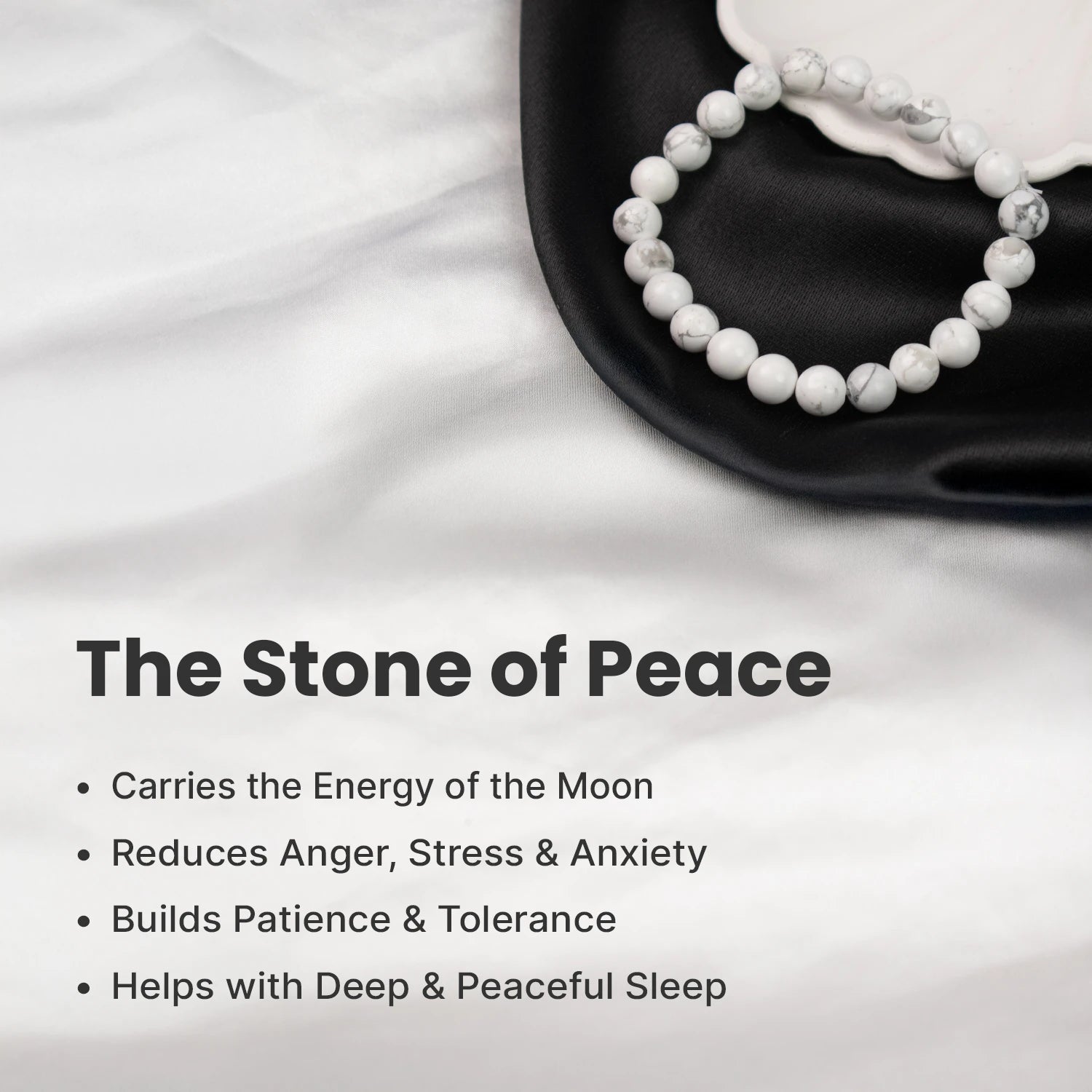Howlite BraceletThe Howlite Bracelet carries the soft and calming energy of the Moon, helping you stay peaceful and patient even in stressful moments. Known as the Stone of Calmness, Howlite reduces anger, stress, and anxiety while promoting deep and restful sleep.