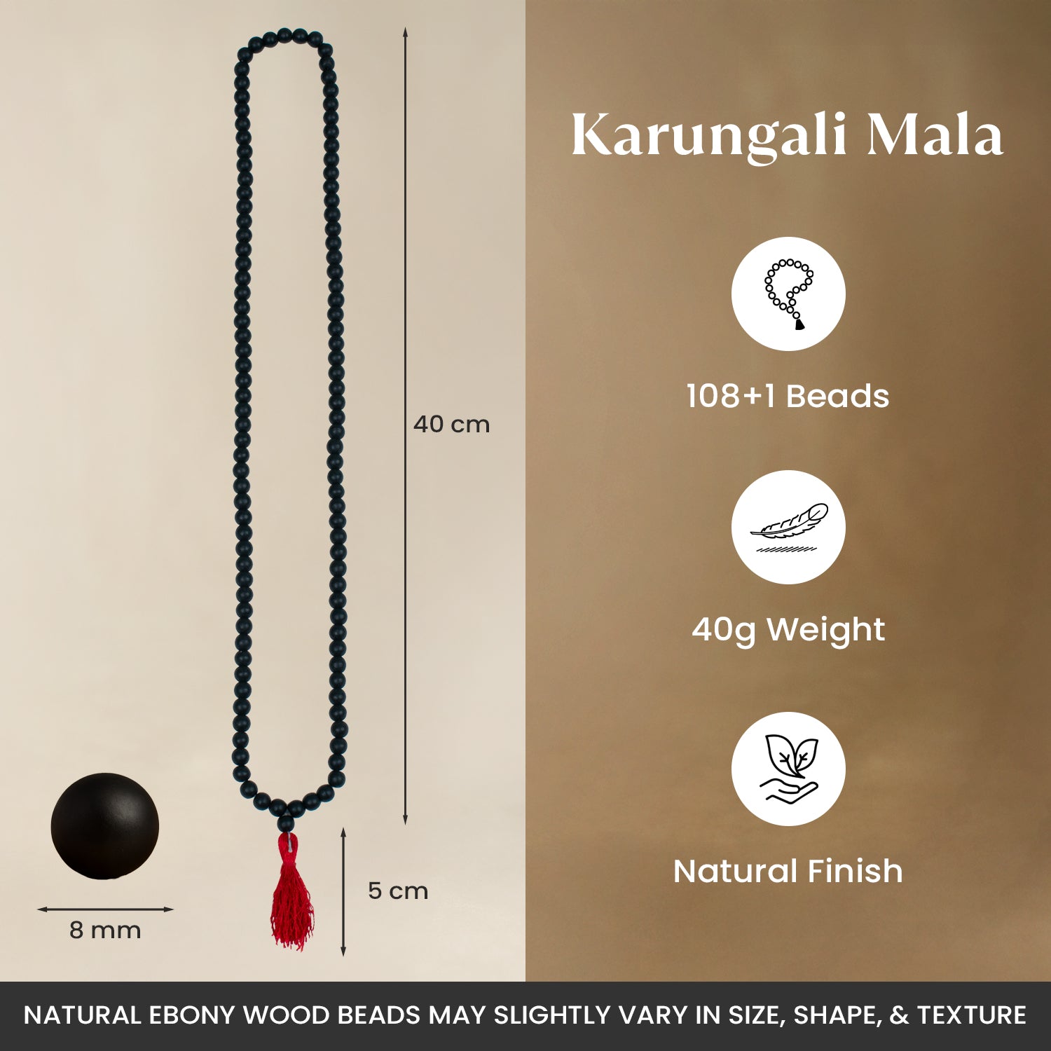 Note: Natural ebony wood beads may slightly vary in size, shape, & texture.