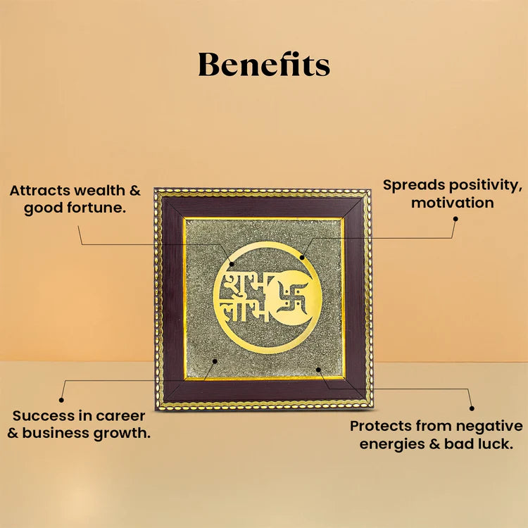 FREE Shubh Labh Pyrite Frame adds extra blessings! The words Shubh (Goodness) and Labh (Profit) bring happiness, success, and financial growth to your space.