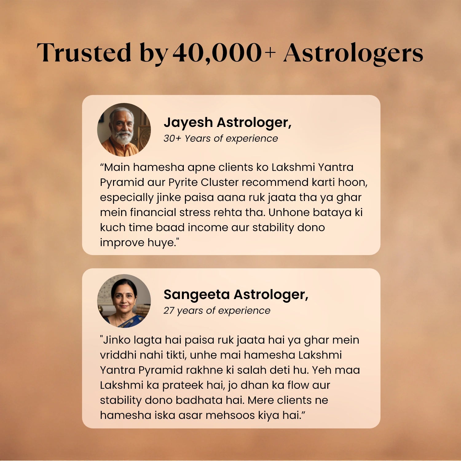 This combo comes with a free Raw Pyrite Stone, also called Fool’s Gold, known for its strong money-attracting energy. Pyrite boosts confidence, motivation, and the courage to take new opportunities, making it a perfect partner for the Lakshmi Yantra Pyramid. Together, they work to clear negativity, enhance focus, and align you with success.